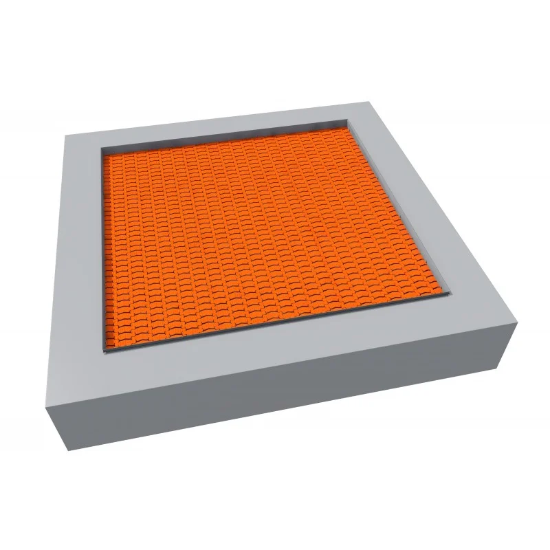 jumping mat is Gjord av very hållbart V-shaped polyamide elements (lamellas), med en non-halk yta in formalternating horizontal och round protrusions,