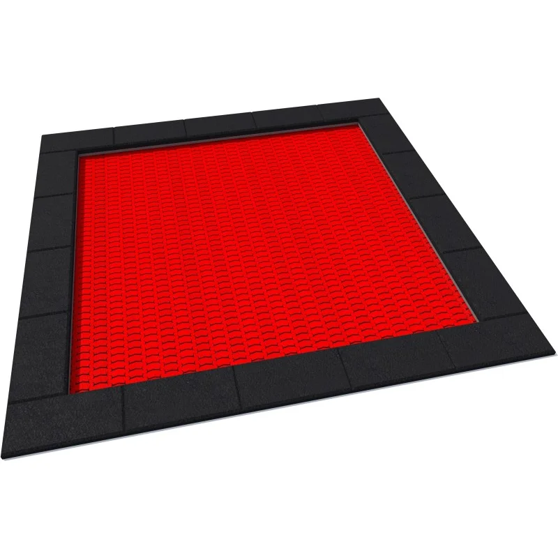 jumping mat is Gjord av very hållbart V-shaped polyamide elements (lamellas), med en non-halk yta in formalternating horizontal och round protrusions,