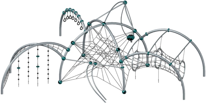 Produkten är utvecklad för lekplatser, förskolegårdar och andra offentliga utemiljöer där utrustningen behöver tåla regelbunden användning över tid. Modellen skapar en tydlig aktivitetsyta där barn kan utveckla rytm, balans och koordination i kontrollerad form. Mått enligt specifikation: cirka 12,4 x 11,6 x 3,8 m. Rekommenderad ålder: 5+. En hållbar lösning för långsiktig drift och trygg användning i offentlig utemiljö.