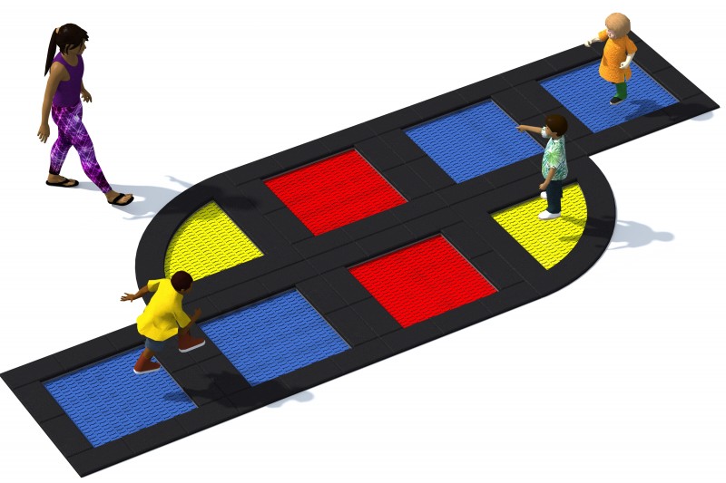 Studsmatta TUTO 19 för intensiv offentlig lek med säker studs, hållbar konstruktion och hög användarkomfort över tid.