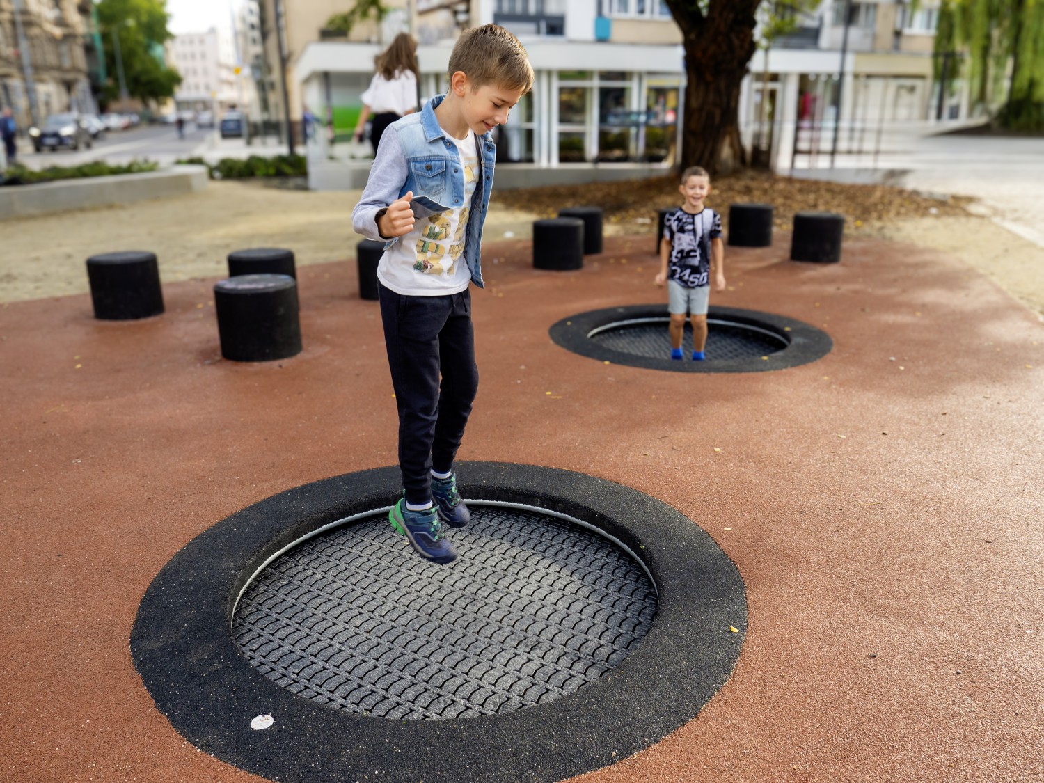 Studsmatta TUTO 2 för intensiv offentlig lek med säker studs, hållbar konstruktion och hög användarkomfort över tid.