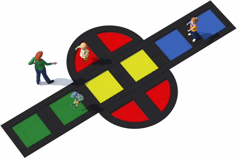 Studsmatta TUTO 21 för intensiv offentlig lek med säker studs, hållbar konstruktion och hög användarkomfort över tid.