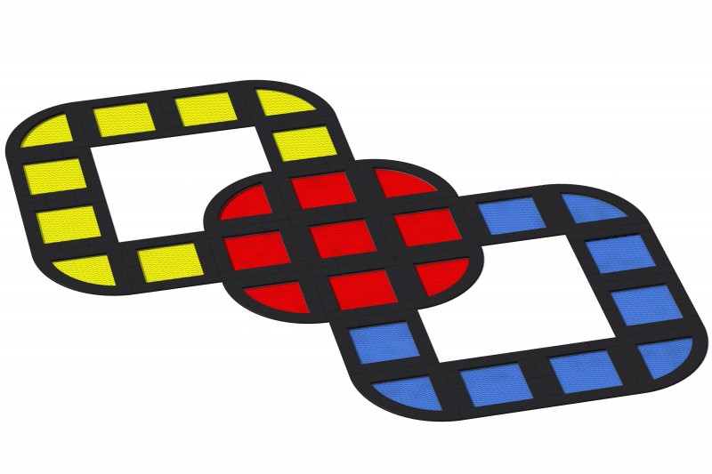 jumping mat is Gjord av very hållbart V-shaped polyamide elements (lamellas), med en non-halk yta in formalternating horizontal och round protrusions,