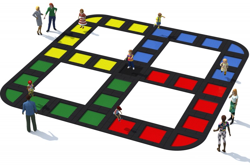 Studsmatta TUTO 27 för intensiv offentlig lek med säker studs, hållbar konstruktion och hög användarkomfort över tid.