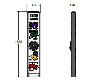 Temalek Bodell är en dubbelsidig aktivitetsvägg i FARMLIFE-serien som samlar flera interaktiva moment i ett kompakt format. Produkten stödjer barns sinnesutveckling, motorik och kommunikation genom taktila element, ljud och rörelsebaserade funktioner. Väggens utformning gör den lämplig för både fri lek och pedagogiskt ledda aktiviteter i förskole- och lekplatsmiljö. Bodell passar särskilt bra där man vill addera ett lärande och socialt inslag på marknivå. Konstruktionen är framtagen för offentlig drift med återkommande användning. Mått enligt specifikation: cirka 0,33 x 0,17 x 1,6 m. Rekommenderad ålder: 3+. En mångsidig lösning för aktiv temalek.