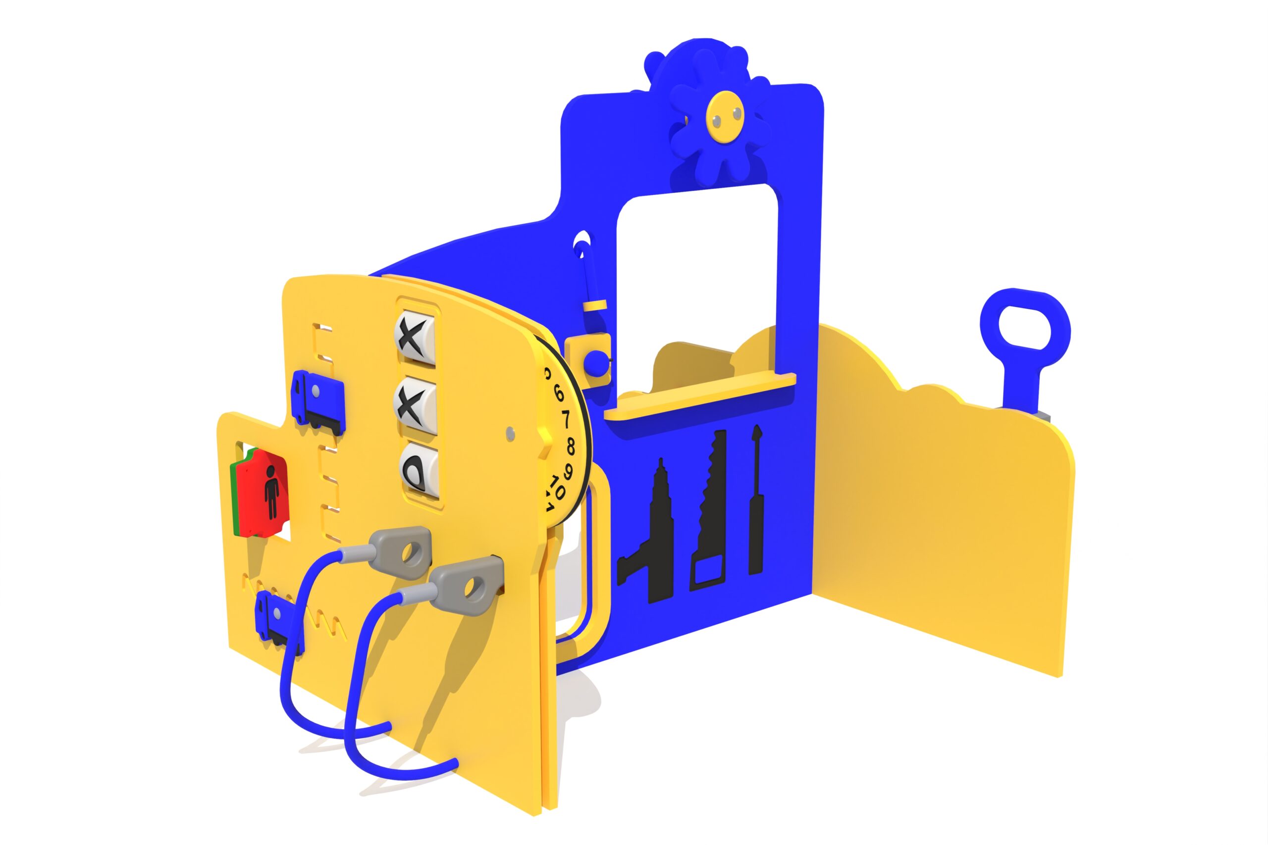 Lekutrustningen omfattar bland annat: en ratt, två roterande växlar, två stora kugghjul samt ett roterande trafikljus med gå- och stopp-symboler. Här finns även ett center för pumpning av bildäck med ett rörligt armstöd som fungerar som pump, inklusive slang som kan fästas på däcket.