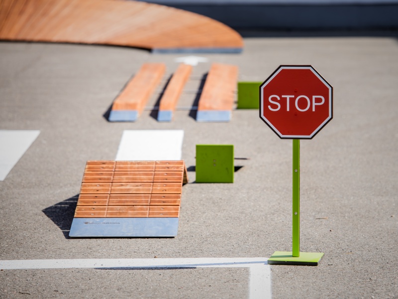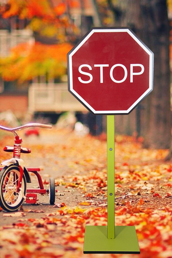 Väderbeständig trafikskylt tillverkad av HDPE-plast, vattentät plywood och klistermärke. Enkel att flytta och använda i olika lekmiljöer.