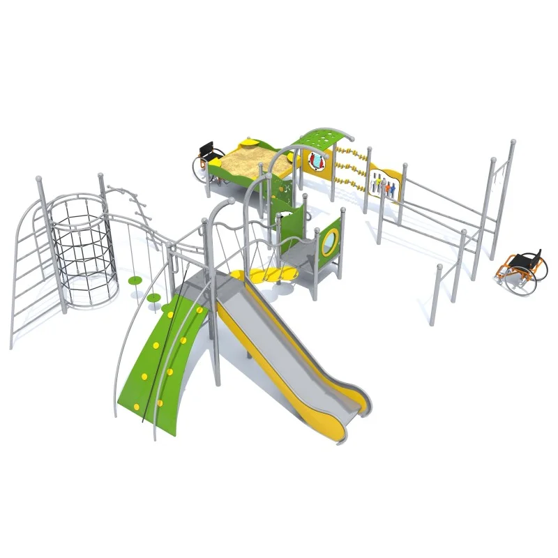 Tillgänglig lek DOMO-I 1-2 är utvecklad för offentliga lek- och utemiljöer där säkerhet, hållbarhet och driftsäkerhet är avgörande. Lösningen är avsedd för inkluderande lek där fler barn kan delta på lika villkor med trygg och tydlig användning. Vanliga material i utförandet är rostfritt stål, HPL och HDPE. Konstruktionen är anpassad för daglig användning i parker, skolor, förskolor och bostadsområden med långsiktigt underhåll i fokus. Kontakta oss gärna för rådgivning om placering, underlag, montage och val av utförande.