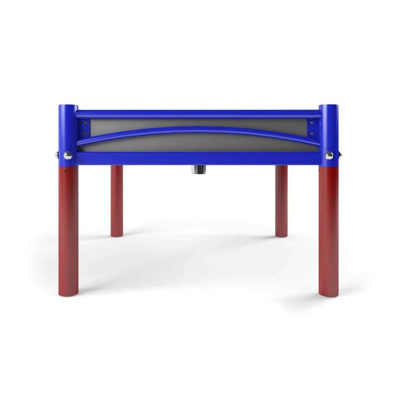 Förhöjd och låg sandlåda anpassad för inkluderande lek. Yttermått låg sandlåda: 1410 x 1410 mm. Yttermått förhöjd sandlåda: 1360 x 1360 mm. Innermått låg: 1050 x 1050 mm. Innermått förhöjd: 1148 x 1148 mm. Höjd från mark låg: 240 mm. Höjd från mark förhöjd: 879 mm. Vikt låg (utan fundament): 67 kg. Vikt förhöjd (utan fundament): 117 kg. Tillverkad i HDPE med 10 mm tjocka sidor och 15 mm sits. Benens tvärsnitt: 90 mm. Monteras genom förankring i marken.