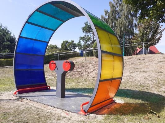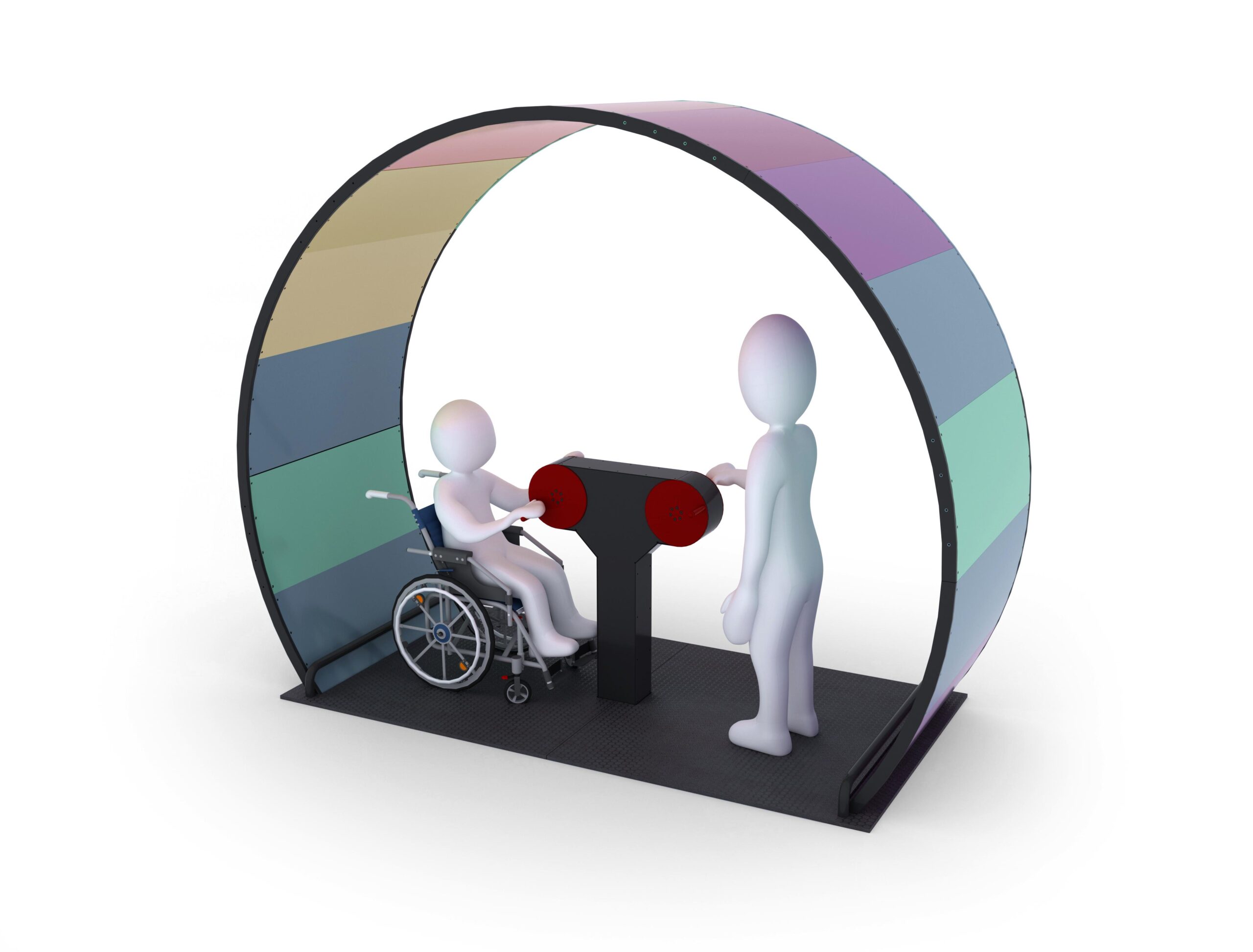 Inkluderande spinnhjul med både terapeutisk och lekfull funktion. Utöver rehabiliteringscenter är enheten lämplig för skolor och förskolor. Spinnhjulet drivs av rotorer för de övre extremiteterna, vilket stödjer rehabilitering av armar och axlar. Rotorerna sätter den färgade kanten i rörelse och skapar en visuell upplevelse där användaren upplever rörelse i förhållande till fälgen. Färgade plattor släpper igenom ljus och stimulerar sensorisk integration. Enheten kan användas av personer med funktionsvariationer, inklusive rullstolsburna.