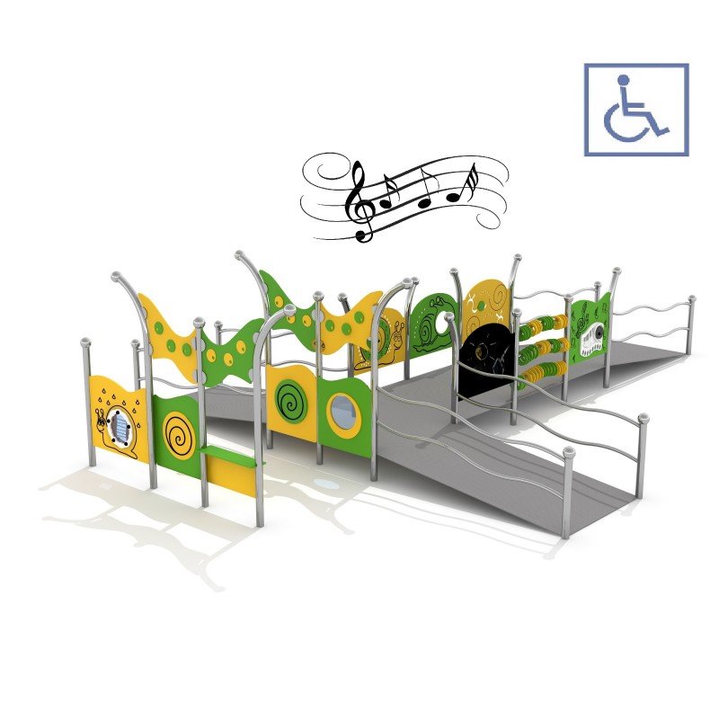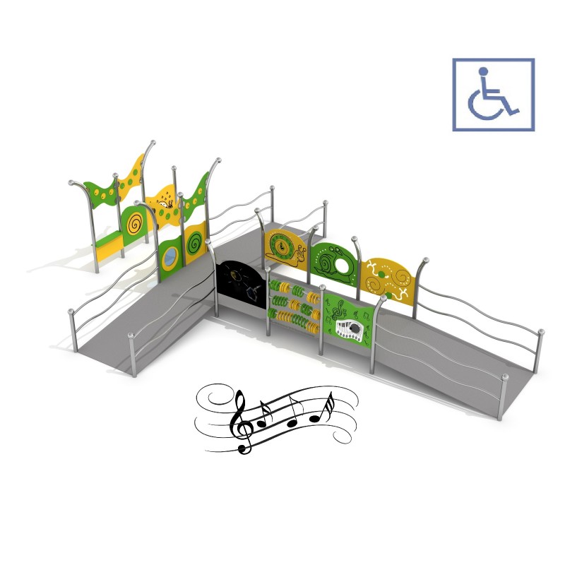 Tillgänglig lek KAJO 2 för inkluderande lekmiljö där fler barn kan delta på lika villkor med fokus på säker och hållbar användning. Material: rostfritt stål.