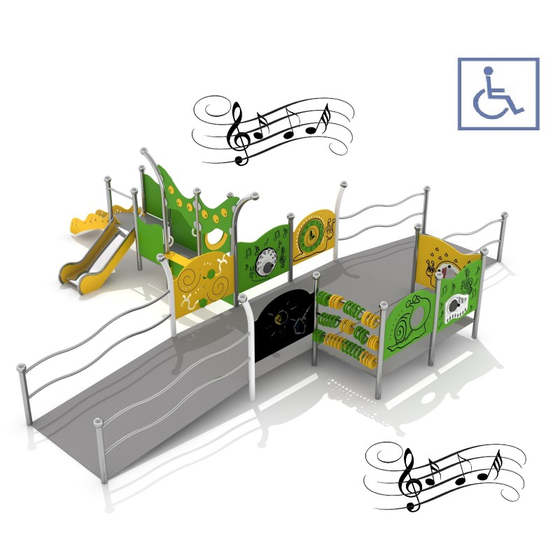 Tillgänglig lek KAJO 3 för inkluderande lekmiljö där fler barn kan delta på lika villkor med fokus på säker och hållbar användning. Material: rostfritt stål.