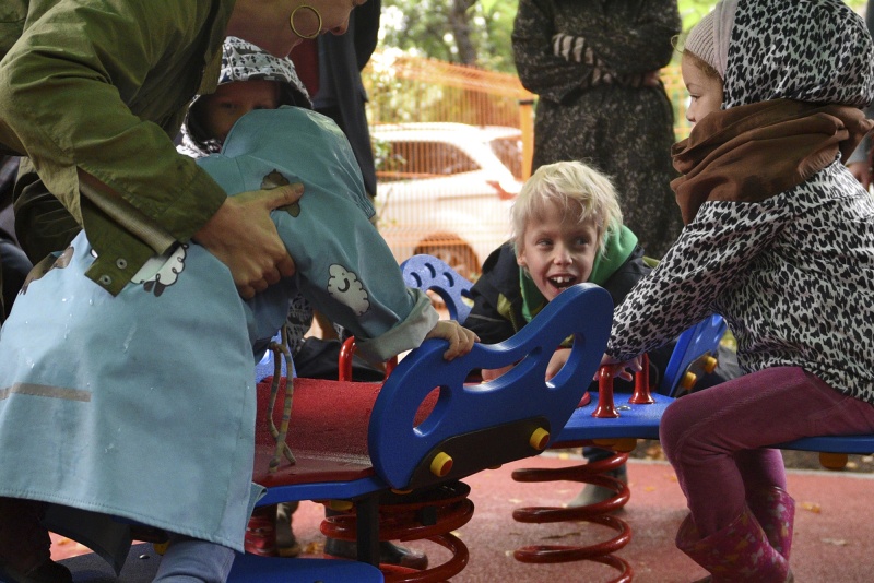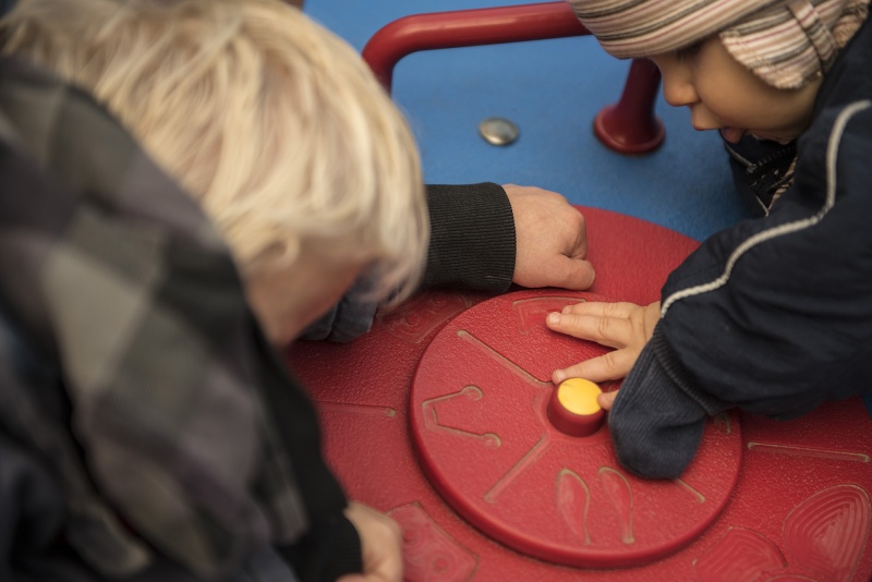 Inkluderande gungbräda med fjädrar för barn med olika funktionsförmåga.