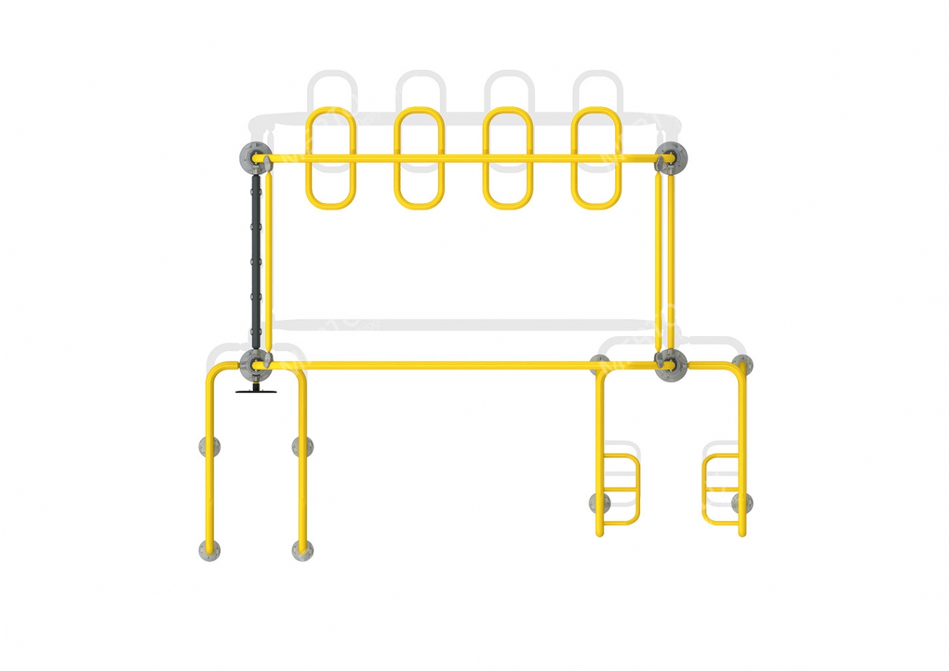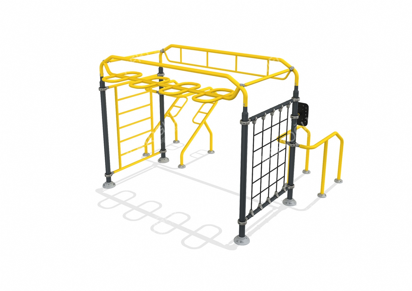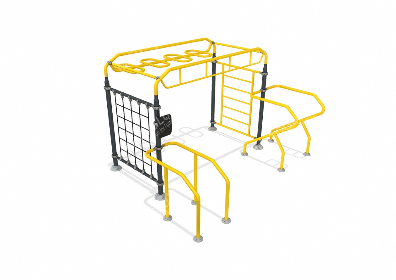 Träningsredskap Ilen är utvecklad för utomhusgym, parker och aktivitetsytor med krav på robust träning för daglig användning. Produkten har bredd 395cm, djup 328cm och höjd 253cm. Utförandet i plåt ger en tålig konstruktion som lämpar sig för återkommande användning i krävande miljöer. Den är anpassad för 6.