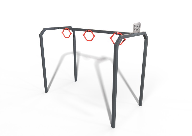 Träningsredskap Ninja Park 1 för offentlig träningsmiljö med robust konstruktion, säker användning och hög tålighet vid daglig belastning. Material: pulverlackerat stål.