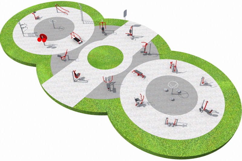 Träningsredskap Träningsstation Fitness 5 för offentlig träningsmiljö med robust konstruktion, säker användning och hög tålighet vid daglig belastning.
