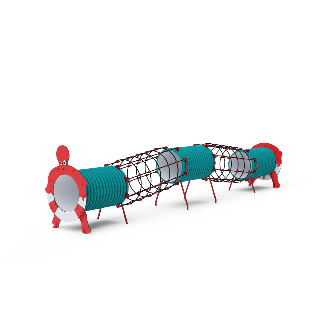 Tunnelredskap Vea är ett tunnelredskap avsett för offentlig utomhusmiljö såsom lekplatser, skolor, förskolor, parker eller gemensamma gårdsmiljöer. Produkten är utförd i galvanized and powder-coated steel, hpl material, stainless steel connectors, vilket ger en tålig konstruktion för daglig användning utomhus. Elementets mått är 6.2 x 0.95 x 1.5 meter. Rekommenderad ålderskategori är from 3 to 14 years. Fri fallhöjd är 0.80 meter. Säkerhetsytan är 9.2 x 3 meter.