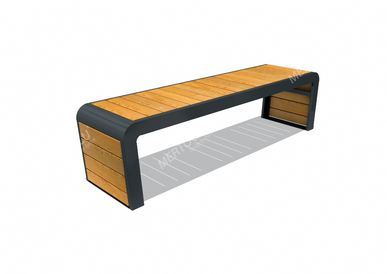 Utemöbel Ulari i plåt och pine trä – natural color för offentlig miljö.