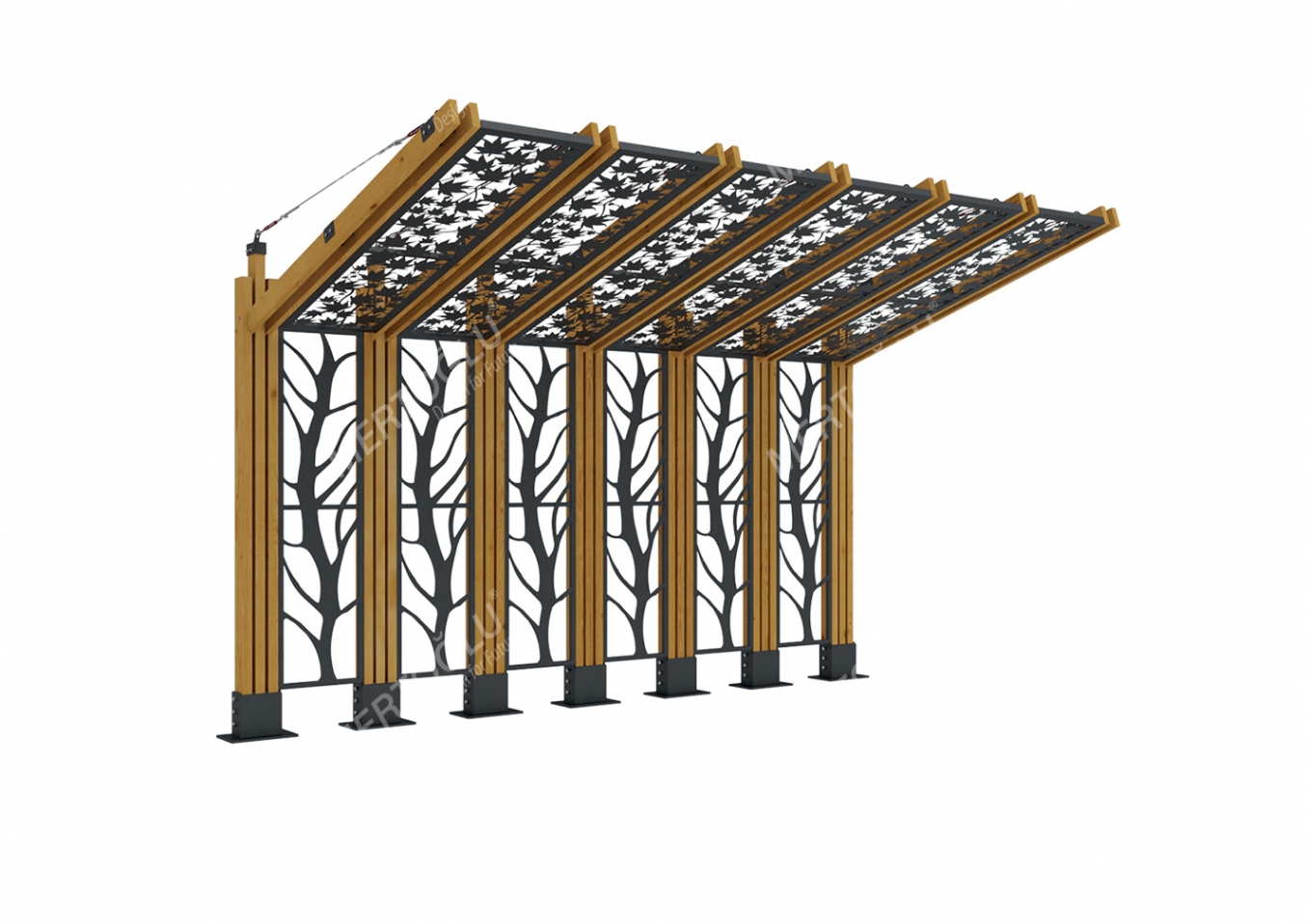 Utemöbel Ulela är utvecklad för parker, torg, gårdar och andra offentliga miljöer med krav på slitstyrka och daglig användning. Produkten har bredd 4,90m, djup 2,50m och höjd 3,10m. Utförandet i pine trä – natural color ger en tålig konstruktion som lämpar sig för återkommande användning i krävande miljöer.