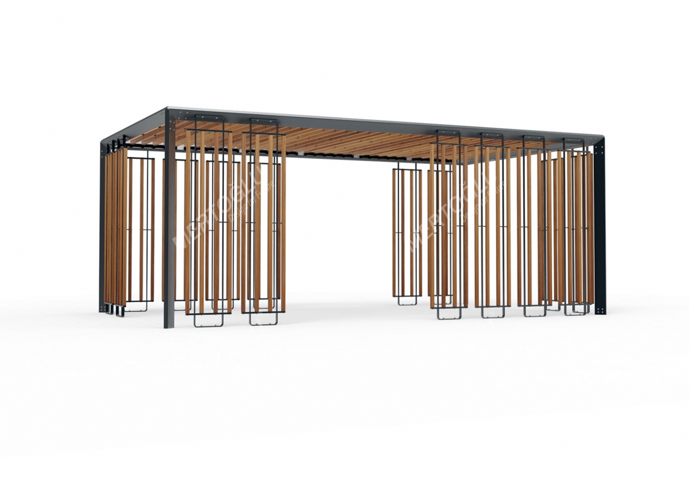 Utemöbel Ulil är utvecklad för parker, torg, gårdar och andra offentliga miljöer med krav på slitstyrka och daglig användning. Produkten har bredd 6.0m, djup 3.5m och höjd 2.40m. Utförandet i furu i valnötsfinish ger en tålig konstruktion som lämpar sig för återkommande användning i krävande miljöer.