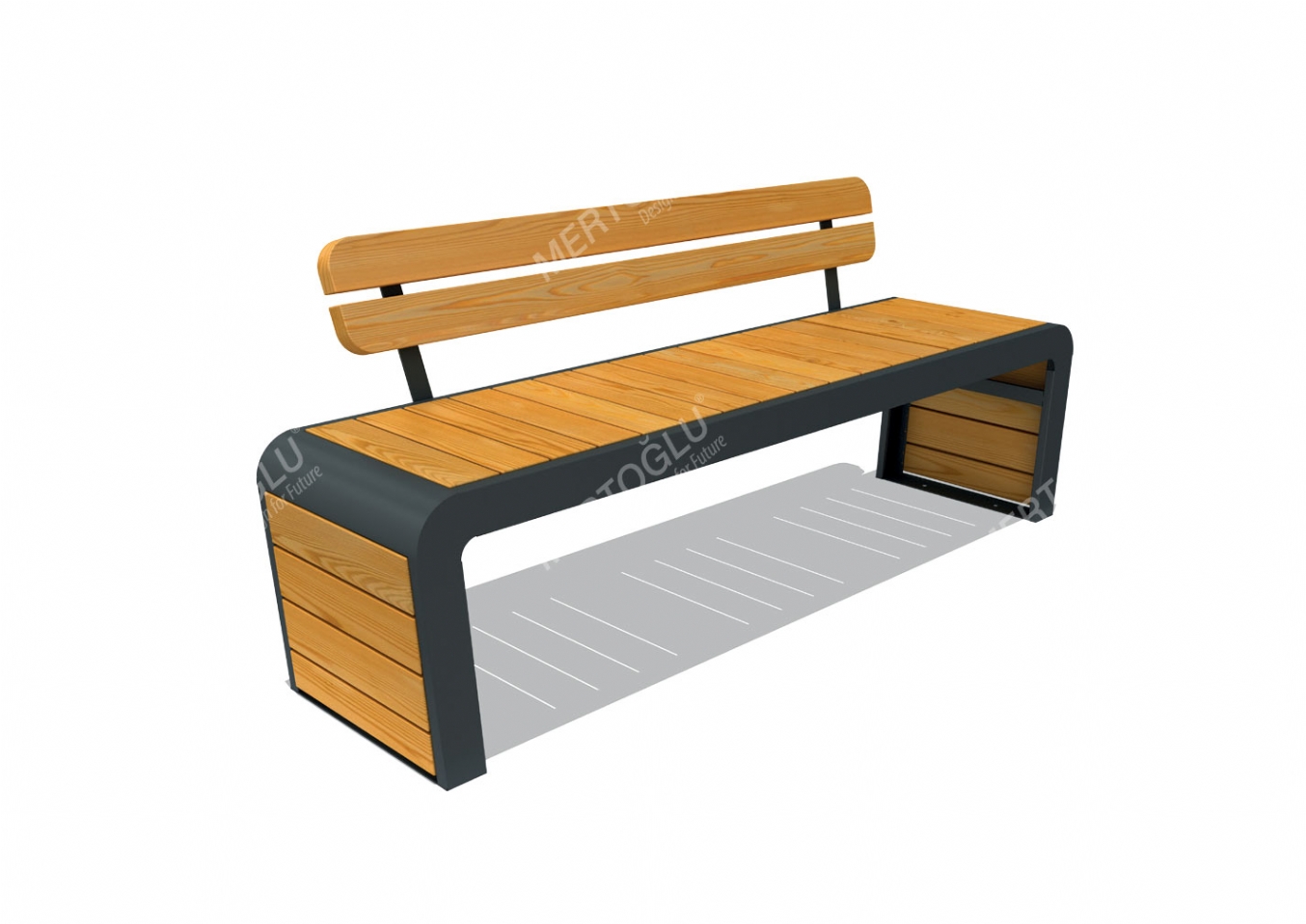 Utemöbel Ulola i plåt och pine trä-natural color för offentlig miljö.