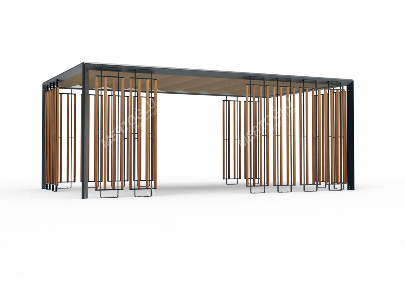 Utemöbel Ulor är utvecklad för parker, torg, gårdar och andra offentliga miljöer med krav på slitstyrka och daglig användning. Produkten har bredd 6.0m, djup 3.5m och höjd 2.40m. Utförandet i furu i valnötsfinish ger en tålig konstruktion som lämpar sig för återkommande användning i krävande miljöer.