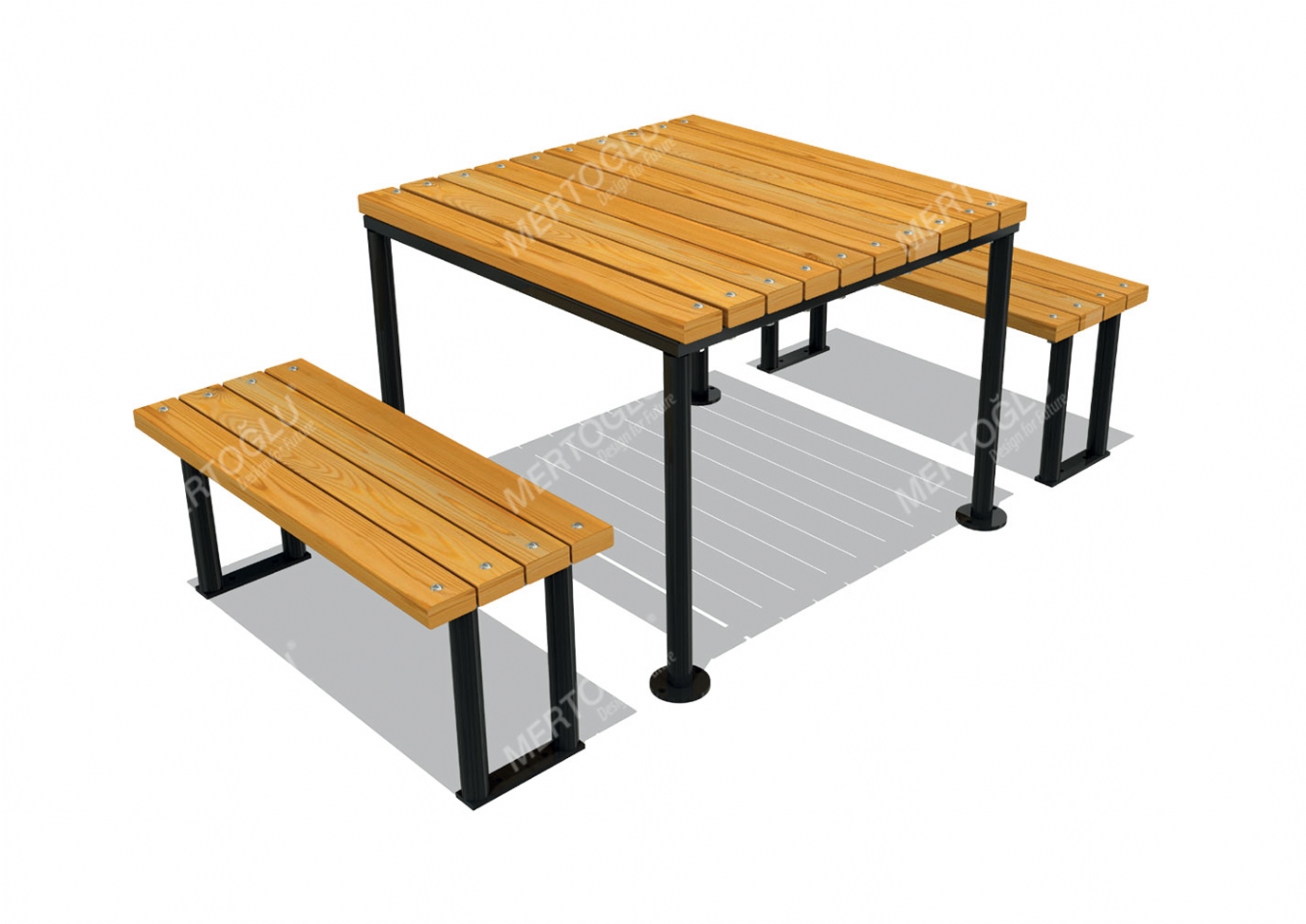 Utemöbel Valula i impregnerad furu för offentlig miljö.