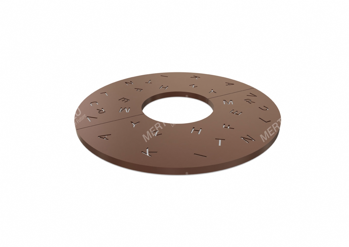Utemöbel Zenar i plåt och laser cut för offentlig miljö.