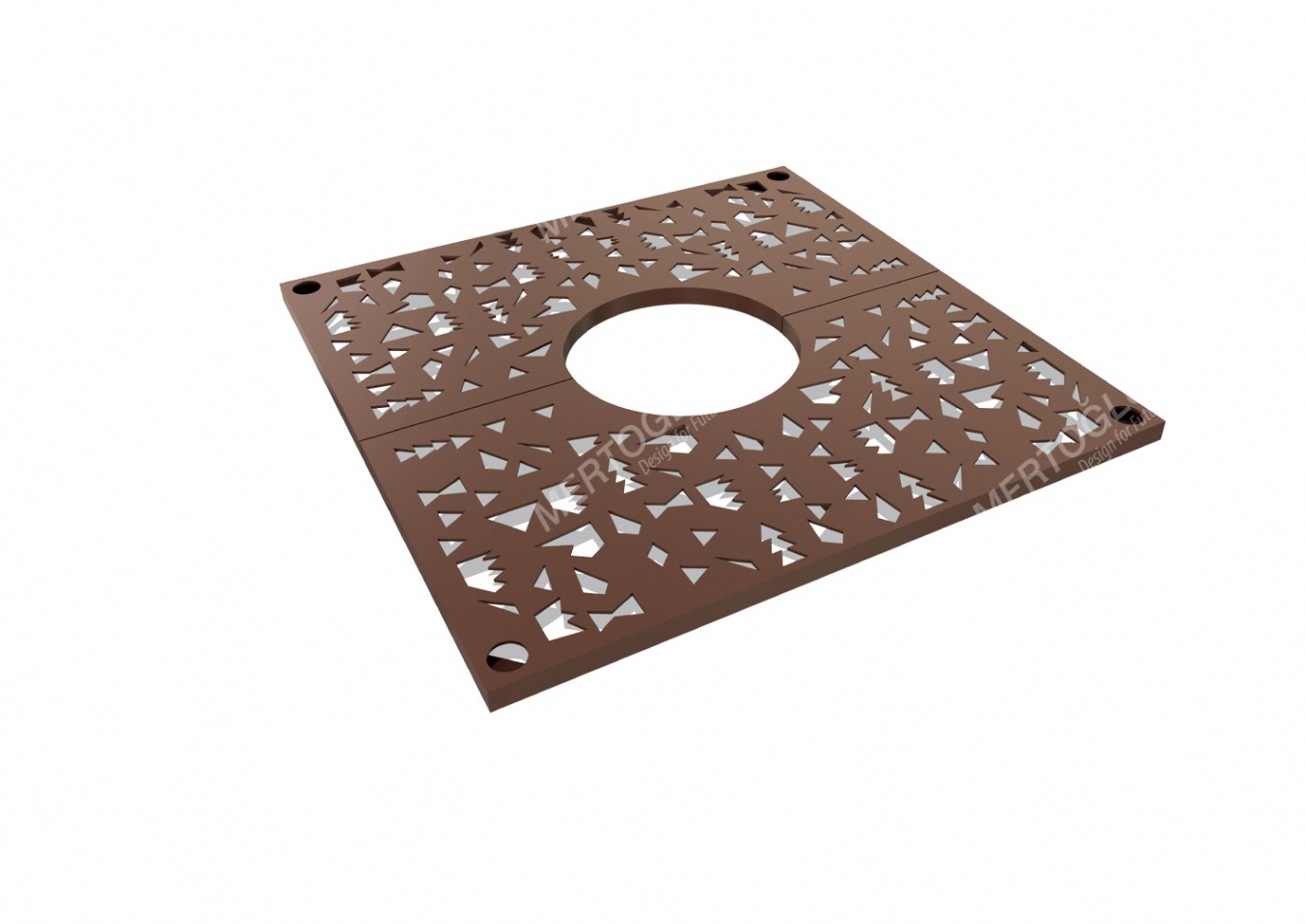 Utemöbel Zenia i plåt och laser cut för offentlig miljö.