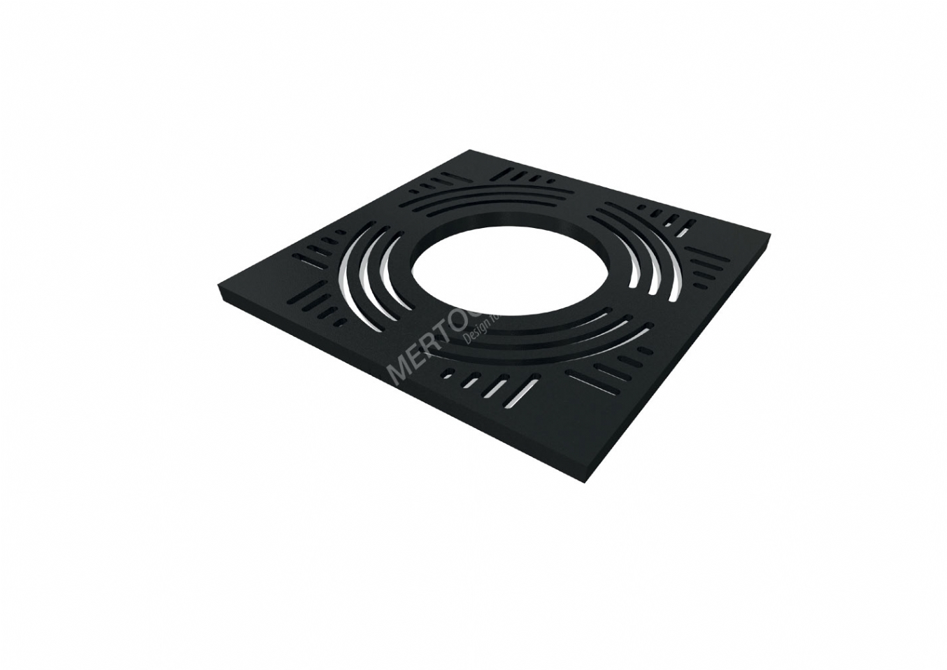 Utemöbel Zenis i plåt och laser cut för offentlig miljö.
