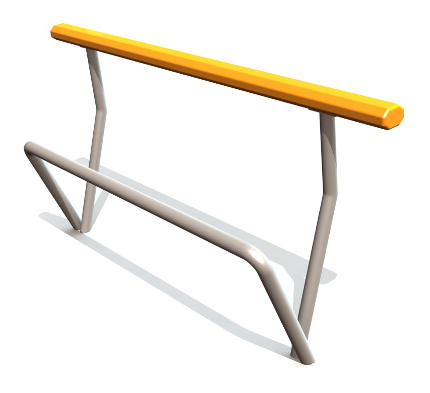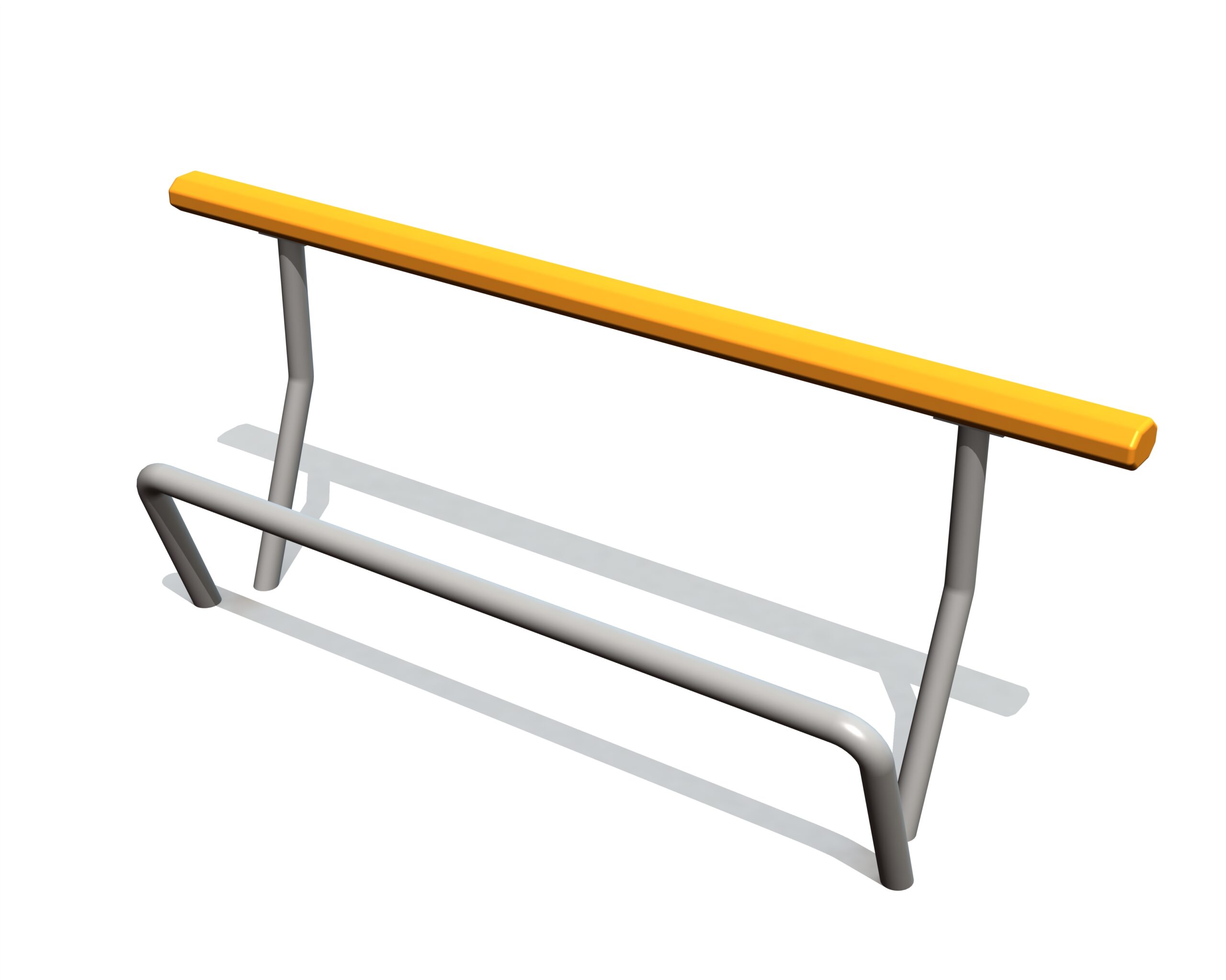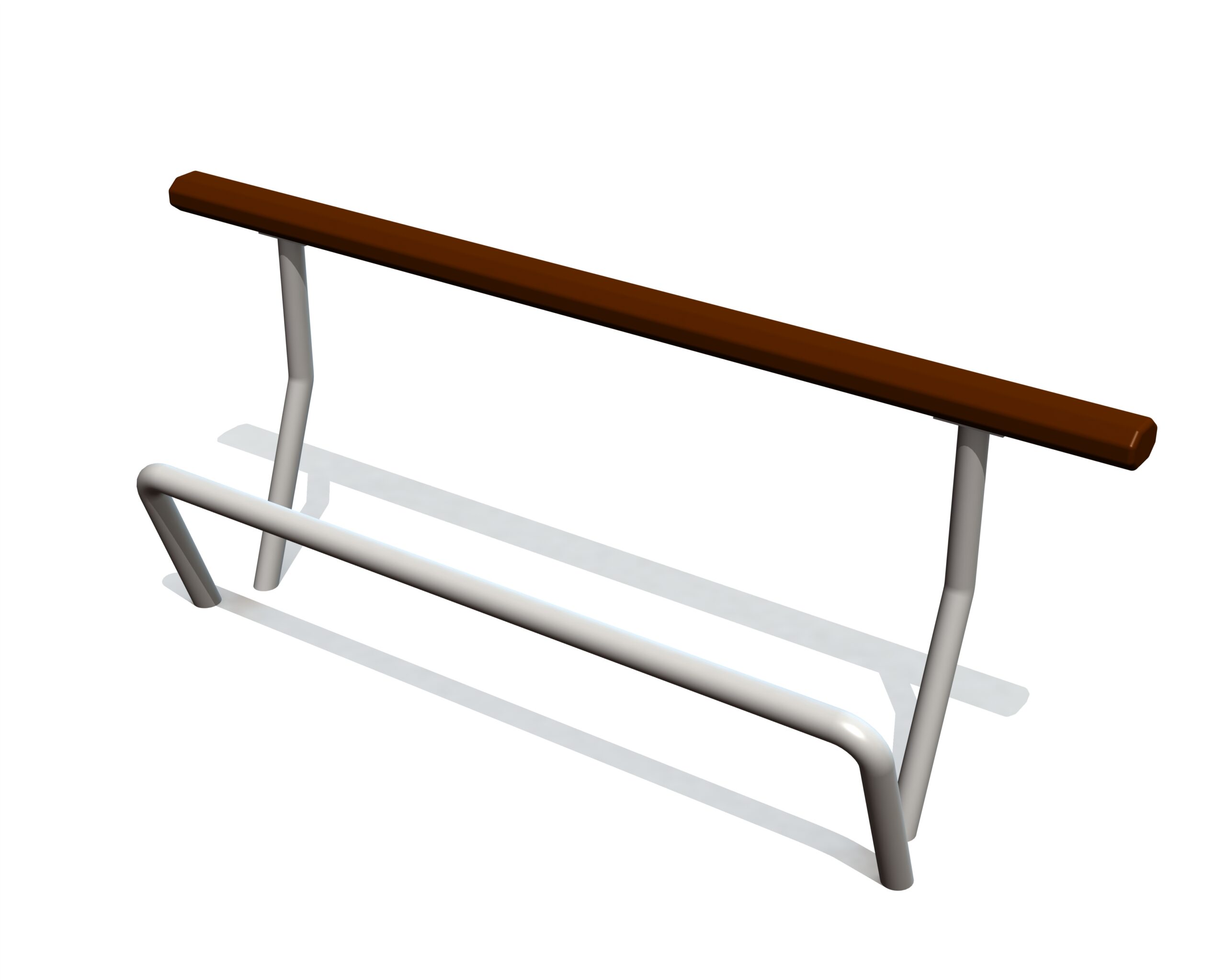 Viloräcke i varmförzinkad metall och laminerat trä, för ingjutning i mark.