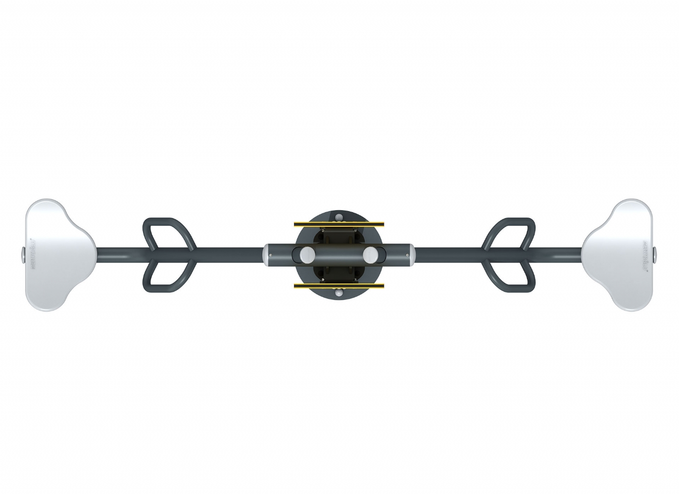Vippredskap Torela i metallprofil, polykarbonat och gummi för offentlig miljö.