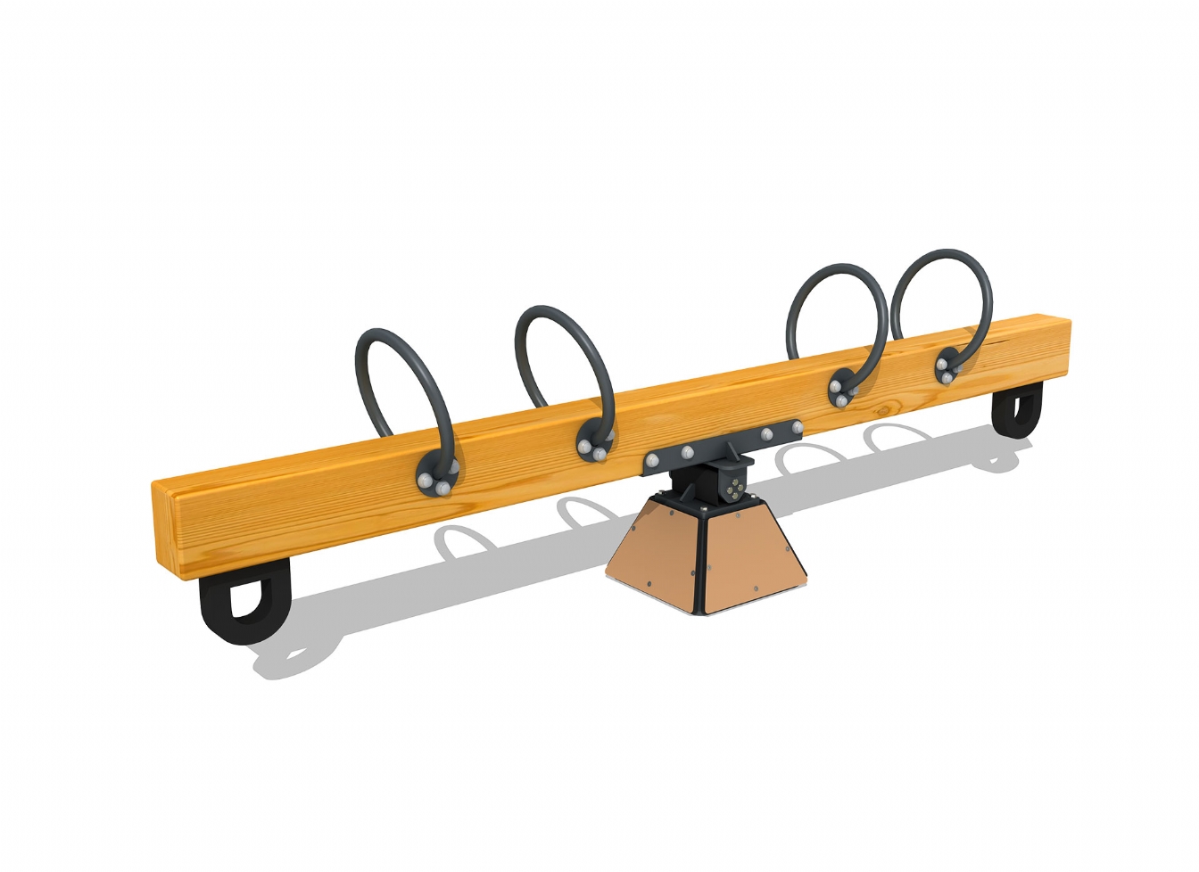 Vippredskap Torun är utvecklad för lekplatser och utemiljöer där man vill erbjuda rörelselek på mindre ytor. Produkten har bredd 320 cm, djup 45 cm och höjd 88 cm. Specifikationen omfattar säkerhetszon L 520 x W 245. Utförandet i metallprofil, polykarbonat, trä och gummi ger en tålig konstruktion som lämpar sig för återkommande användning i krävande miljöer. Den är anpassad för upp till 4 barn och rekommenderad ålder 3-12.
