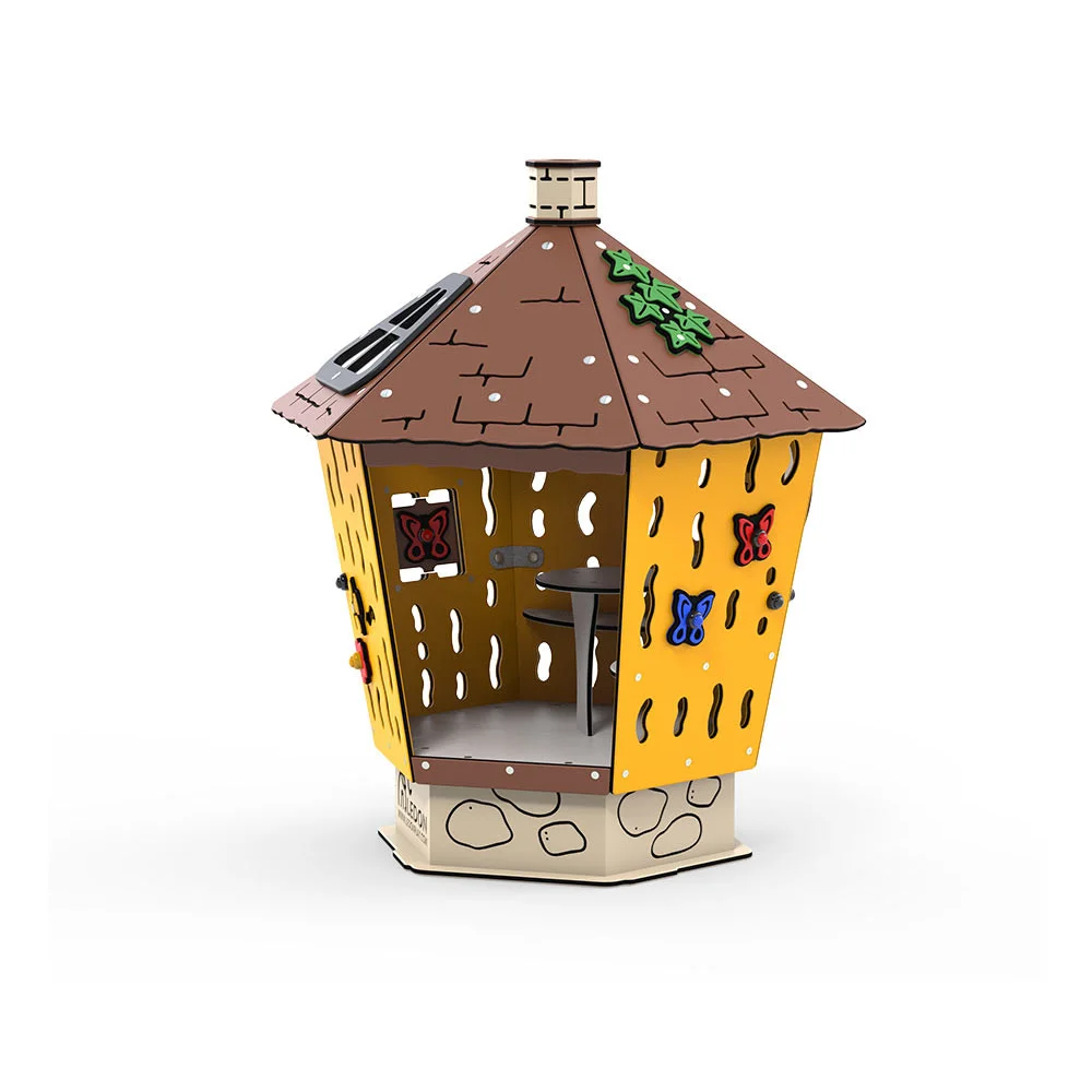 Alfred the Hut är en liten tillflyktsplats där barn kan dra sig undan för lugnare aktiviteter. Inuti finns två bänkar och ett bord, och de rörliga fjärilarna, bina och blommorna uppmuntrar barn att interagera och leka tillsammans. Lekstugan stödjer utveckling av språk, sociala färdigheter och samspel. Alfred har utvecklats i samarbete med barn och barnomsorgspersonal och är anpassad för både inomhus- och utomhusbruk. Takfönstret gör det möjligt för vuxna att ha uppsikt utan att störa leken.