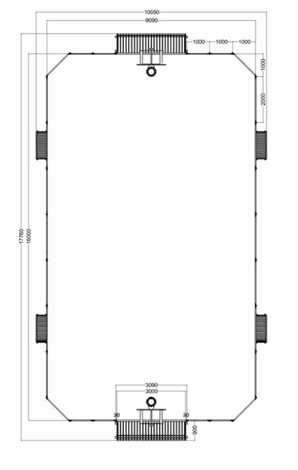 Multiarena av hög kvalitet för lek, rörelse och spontanspel i alla åldrar. Arenan är tillverkad i norrländsk furu och varmförzinkat stål, vilket ger en robust och väderbeständig konstruktion. Standardmått är 10 × 18 meter, med möjlighet till anpassning efter behov. I kortsidorna finns integrerade fotbollsmål och ovanför varje mål sitter ett basketstativ med vit platta. Arenan förankras i betong och lämpar sig för fotboll, basket, innebandy och annan bollaktivitet i offentliga miljöer.