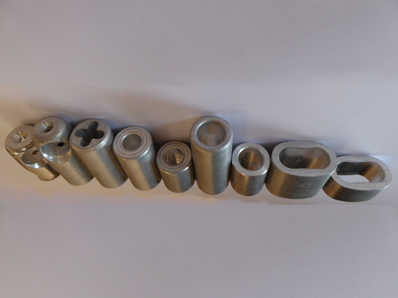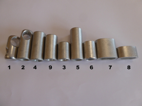 ALUMINIUMHÅLLOR OCH ANSLUTNINGAR FÖR 16 MM LIN (1) Aluminiumkorskoppling Ø 28 x 53 mm Innerdiameter: Ø 17,5 mm Art. 205160 (2) Aluminium T-kontakt Ø 28 x 63 mm (en sida för pressning, andra sidan för att skruva) Innerdiameter: Ø 17,5 mm Art. 205161 (9) Aluminiumhylsa för gängade bultar LÅNGT UTFÖRANDE Ø 28 x 55 mm Innerdiameter repsida: Ø 17,5 mm Innerdiameter Bultsida: Ø 13,5 mm Art. 205162 (3) Aluminiumhylsa för gängade bultar KORTVERSION Ø 28 x 38 mm Inre diameter repsida: Ø 17,5 mm Inre diameter Bultsida: Ø 13,5 mm Art. 205163 (4) Aluminiumhylsa för 6 mm kedjor Ø 28 x 64 mm Repsida: Innerdiameter: Ø 17,5 mm kedjesida: med kedjekors Art. 205164 (5) Aluminiumhylsa rund, LÅNG Ø 28 x 72 mm, Innerdiameter: Ø 17,5 mm Art. 205165 (6) Aluminiumhylsa rund, KORT Ø 28 x 38 mm , Innerdiameter: Ø 17,5 mm Art. 205167 (7) Aluminiumhylsa oval, LÅNG Ø 45/28 x L 43 mm, Innerdiameter: Ø 35/17,5mm Art. 205167 (8) Aluminiumhylsa oval, KORT Ø 45/28 x L 24 mm, Innerdiameter: Ø 35/17,5 mm Art. 205168