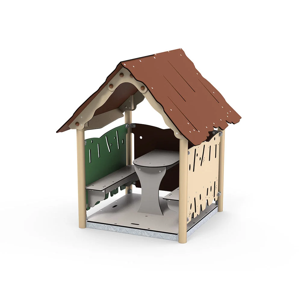 Ana är en standardlekstuga med två bänkar och ett bord Lekstugor ger ofta en bra inramning för rollspelet som är så viktigt för barns utveckling. I samverkan