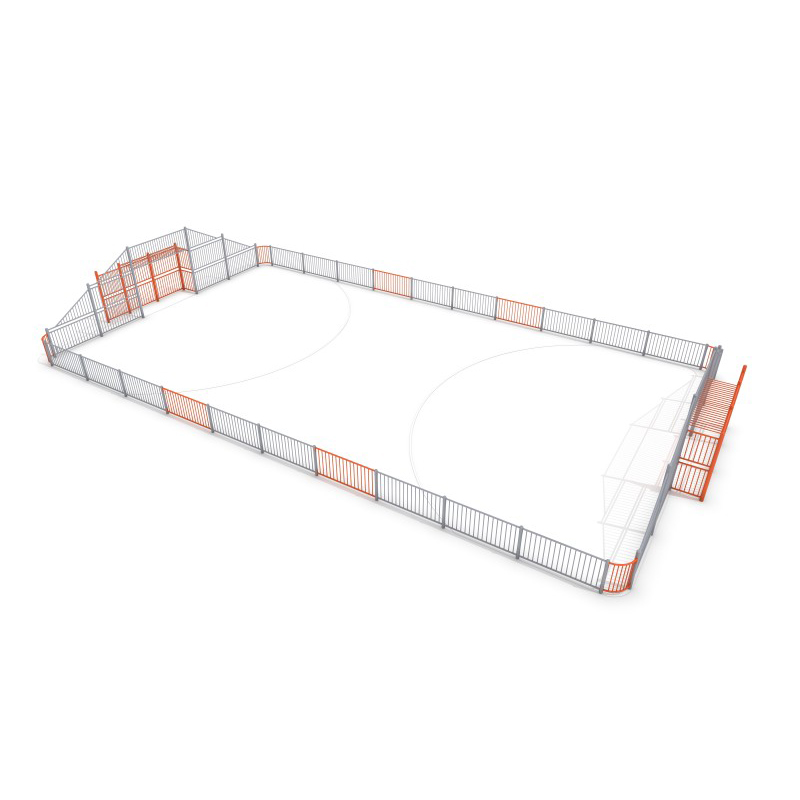 Sports Arena (Muga System), bestående av två fotbollsMål. Moduler att bädda in i marken. Fotobilden visar exempel på produkter som ofta modifieras för att möta kraven för särskilda projekt. Enheten innehåller följande moduler: AR-2,AR-5, AR-6,AR-7,AR-8,AR-11. Alla bilder är endast för illustrationsändaMål och kan skilja sig från den faktiska produkten.