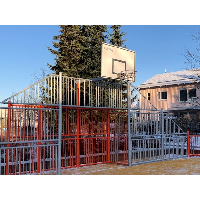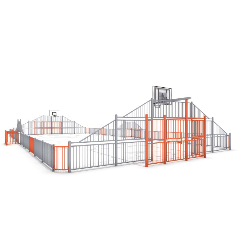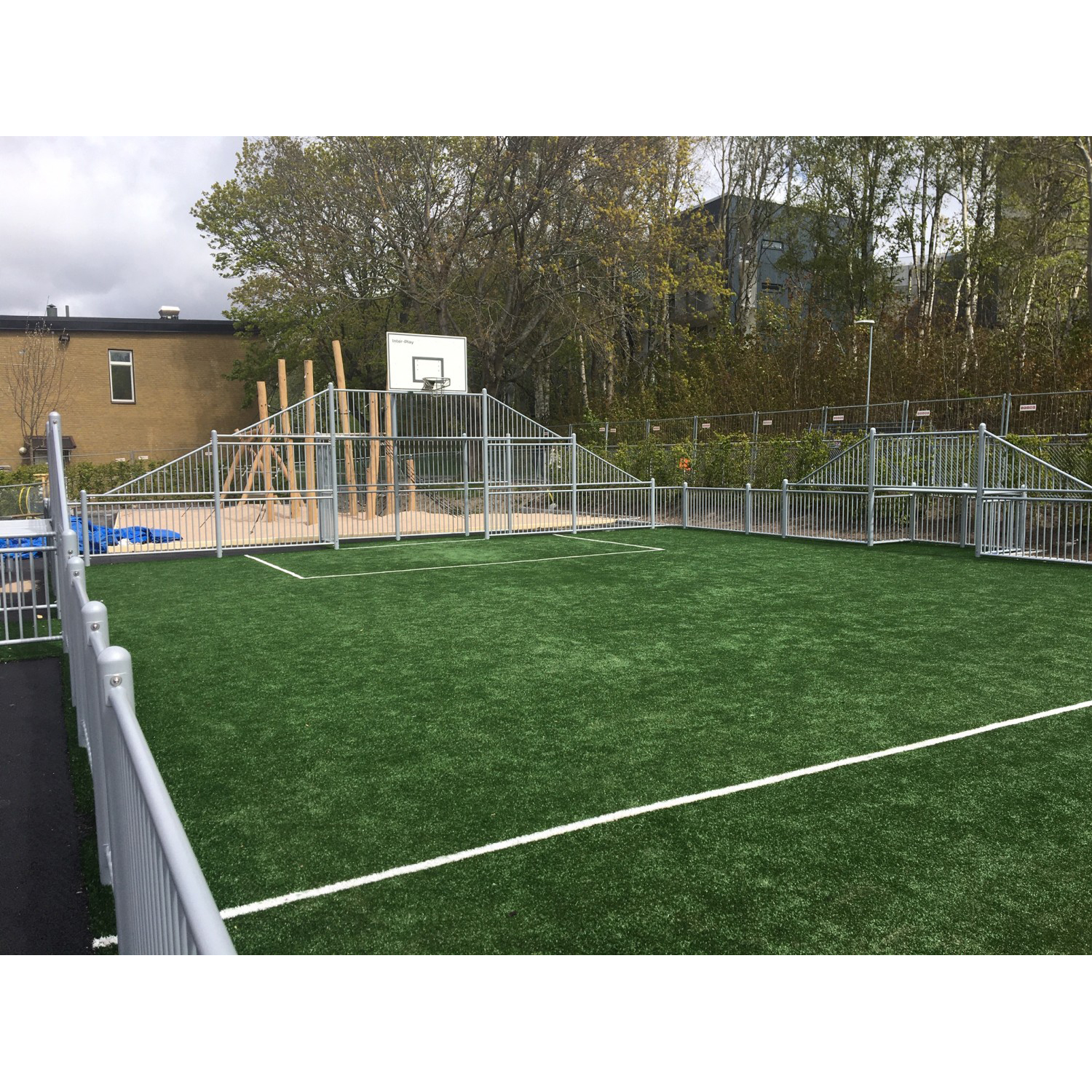 Sports Arena (Muga System), bestående av två fotbollsMål, två innebandyMål och två korgar. Moduler att bädda in i marken. Fotobilden visar exempel på produkter som ofta modifieras för att möta kraven för särskilda projekt. Enheten innehåller följande moduler: AR-1,AR-2, AR-3,AR-4,AR-6,AR-7,AR-8,AR-9,AR-11. Alla bilder är endast för illustrationsändaMål och kan skilja sig från den faktiska produkten.