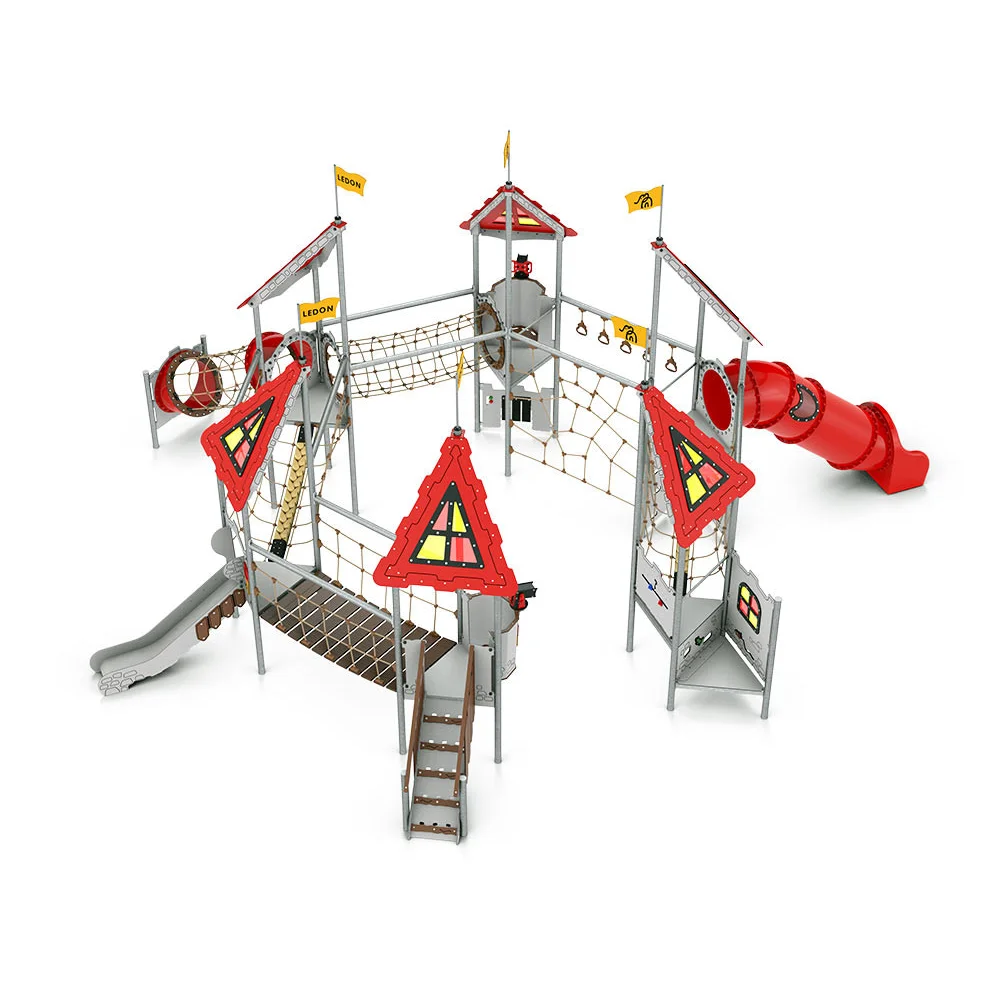 Stort slottskomplex med sex torn och många sammanlänkade klätter- och balansutmaningar.