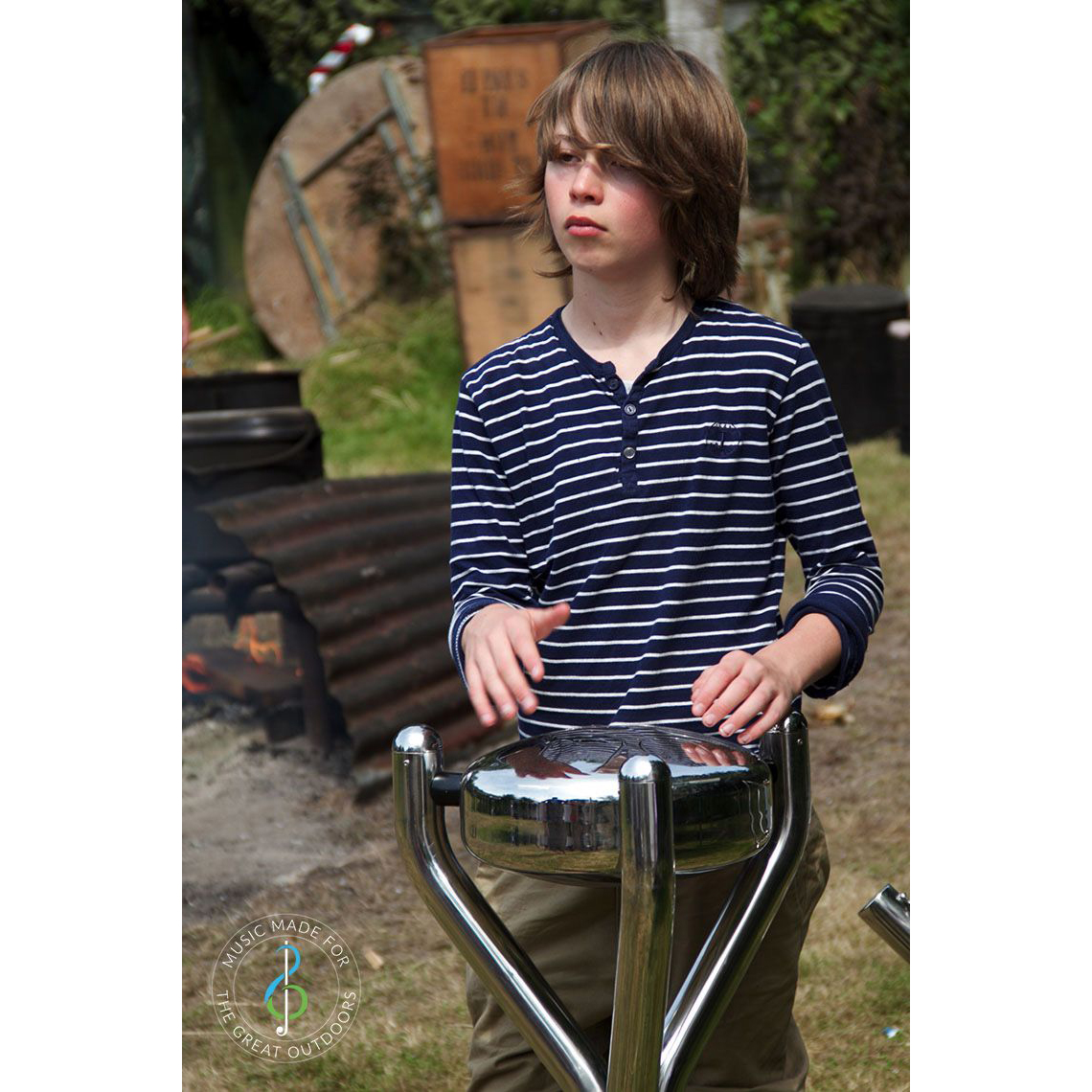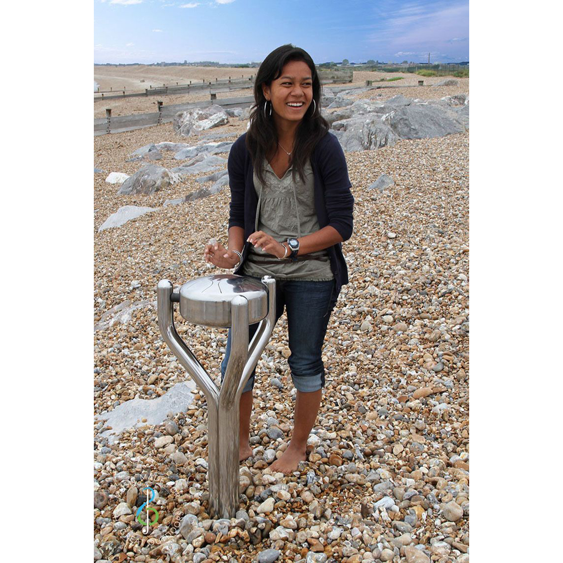 Babel Drum liten är en kompakt och lättspelad ståltongtrumma för utomhusbruk, perfekt för yngre barn och mindre ytor.