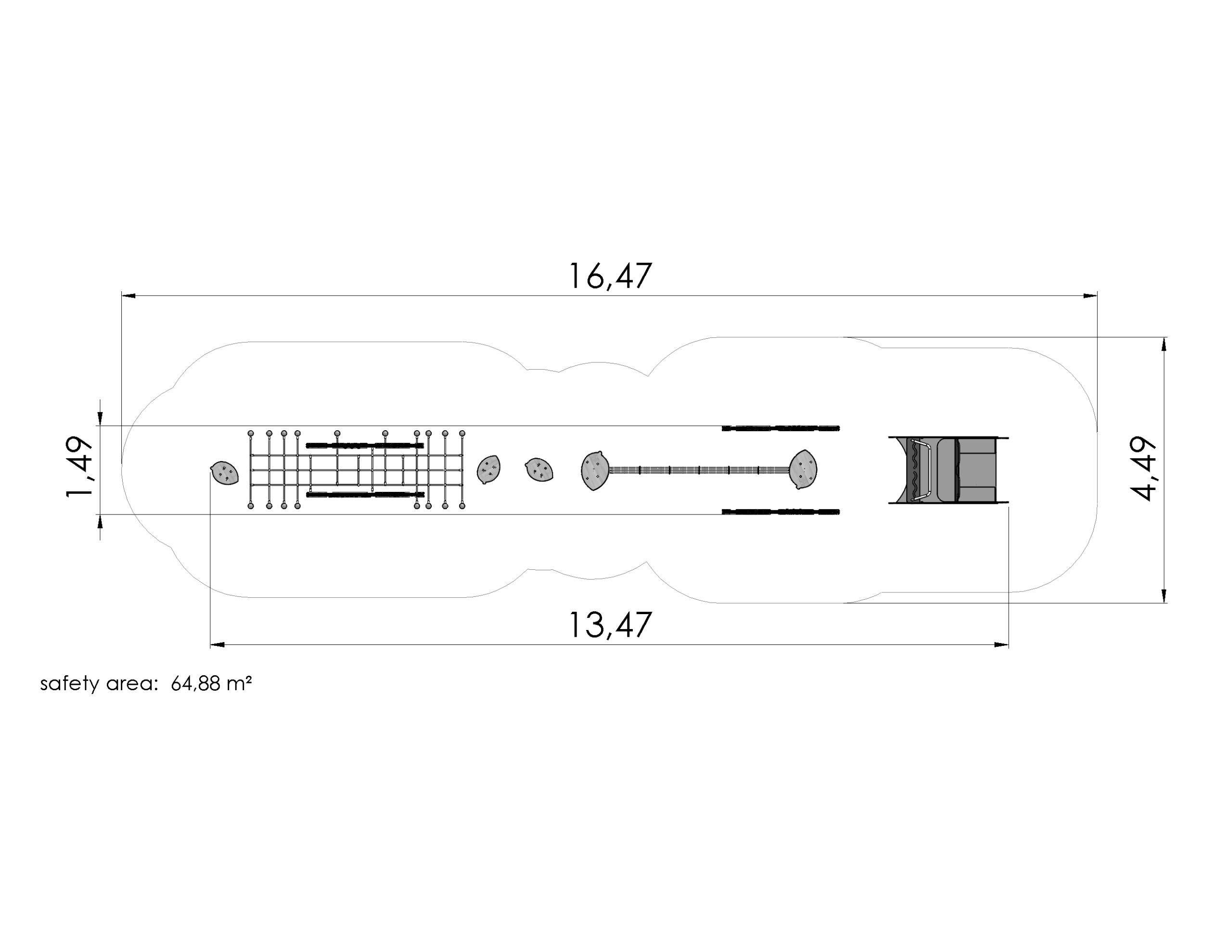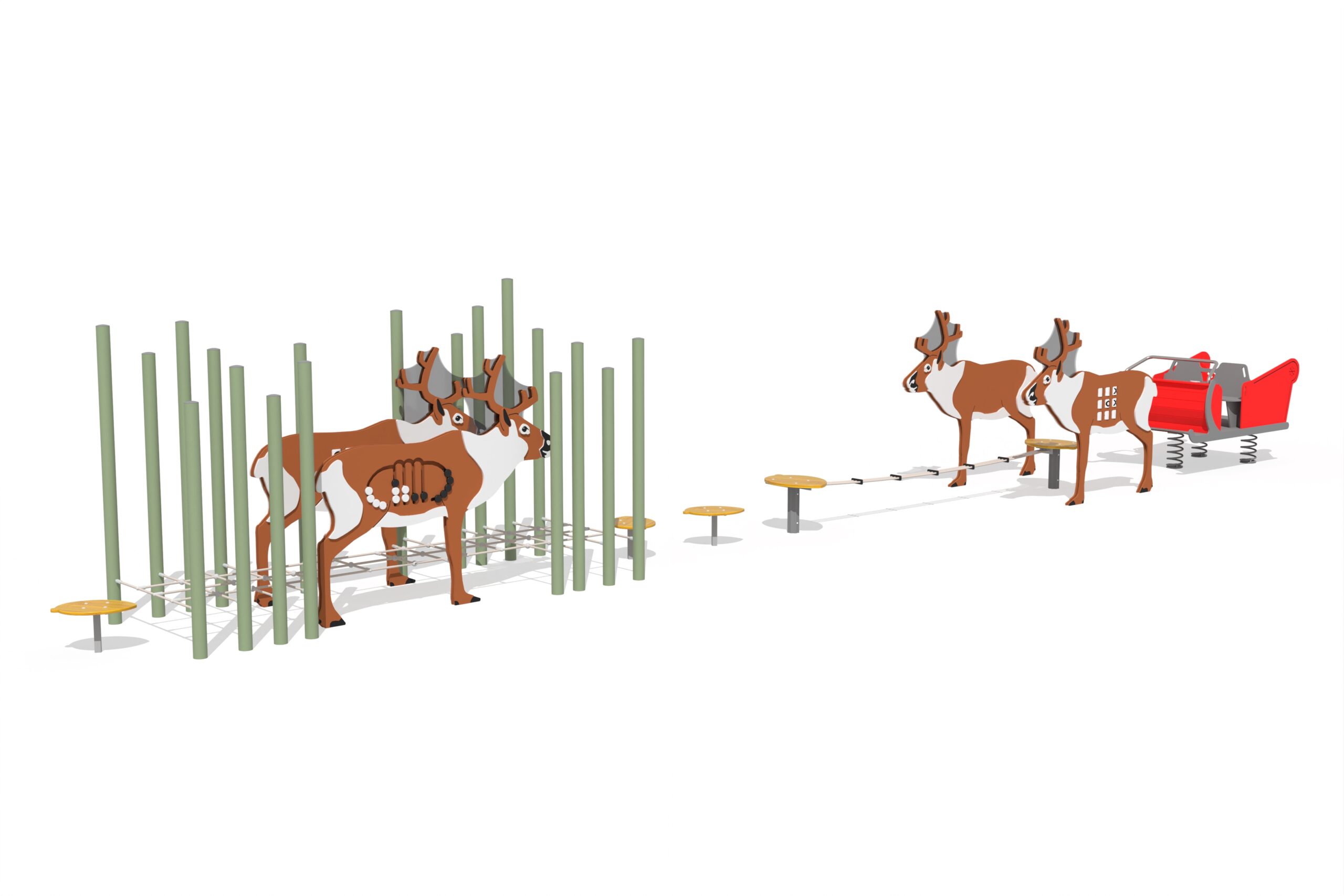 Balans & motorik Renspår ingår i serien ARCTIC theme och är en balansredskap som kombinerar rörelselek, balans och social interaktion i en nordisk lekmiljö. Utformningen uppmuntrar barn att utforska, samarbeta och utveckla koordination i en tydlig temamiljö med fokus på hållbar användning i offentlig utemiljö. Specifikationer: rekommenderad ålder: 2+; max fallhöjd: 0,73 m; mått ca 1,49 x 13,47 x 2,21 m (L x B x H).