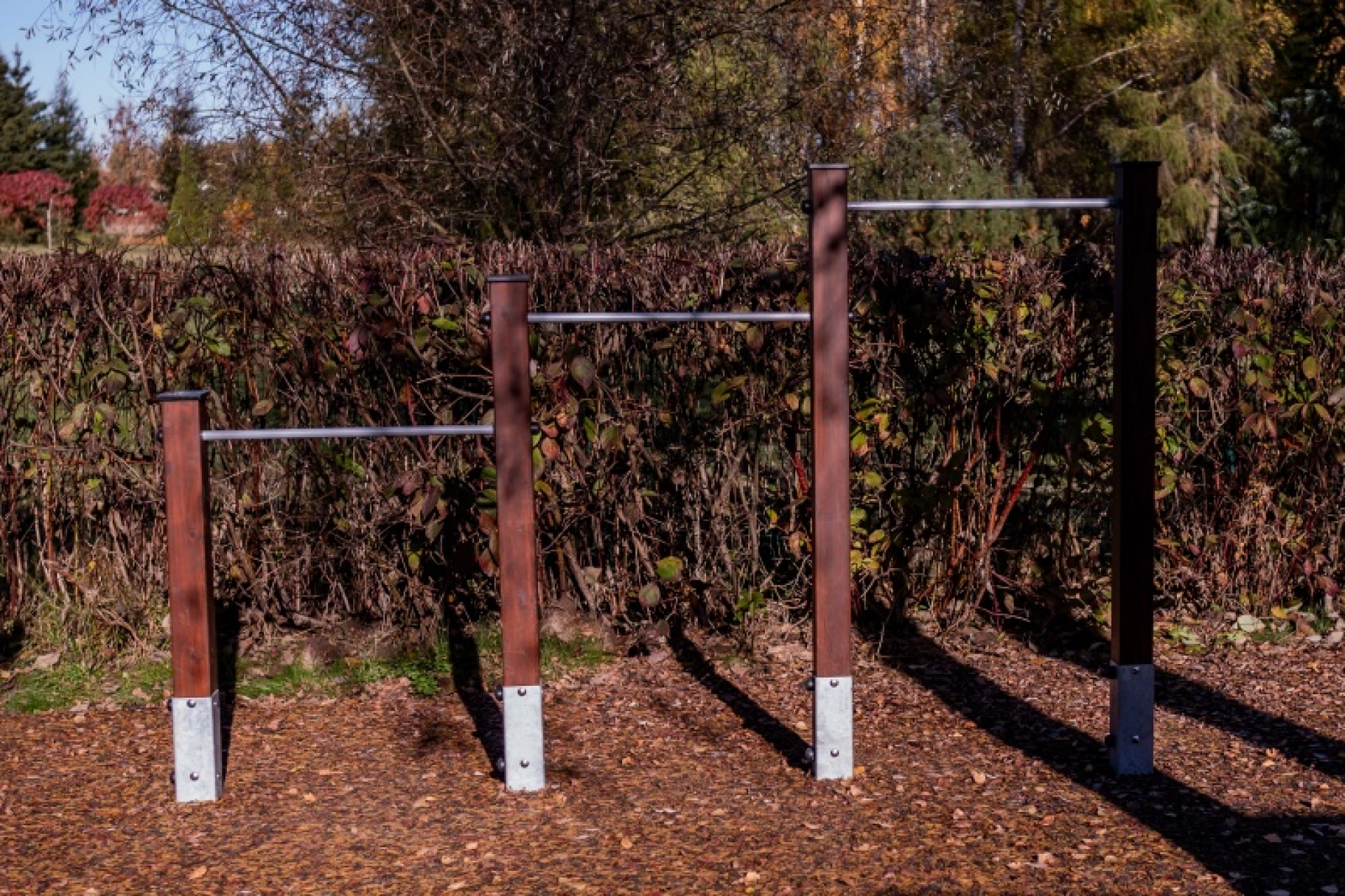 Trapeser med tre höjder (1,0, 1,3 och 1,6 m) låter barn träna fingerfärdighet och uthållighet. Att hänga förbättrar hållningen och ökar muskelstyrkan.
