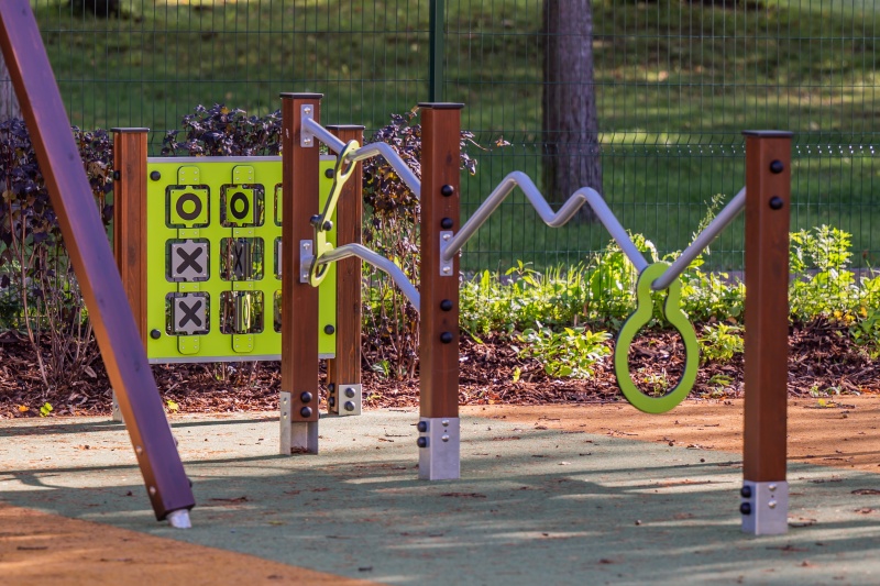 Balansredskap för offentlig utemiljö som tränar balans, koordination och motorik i daglig lek.