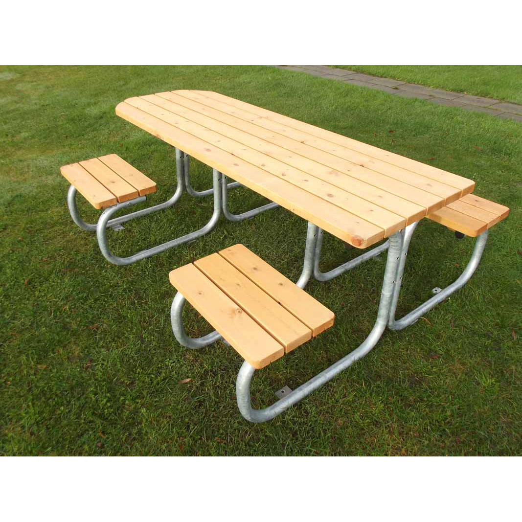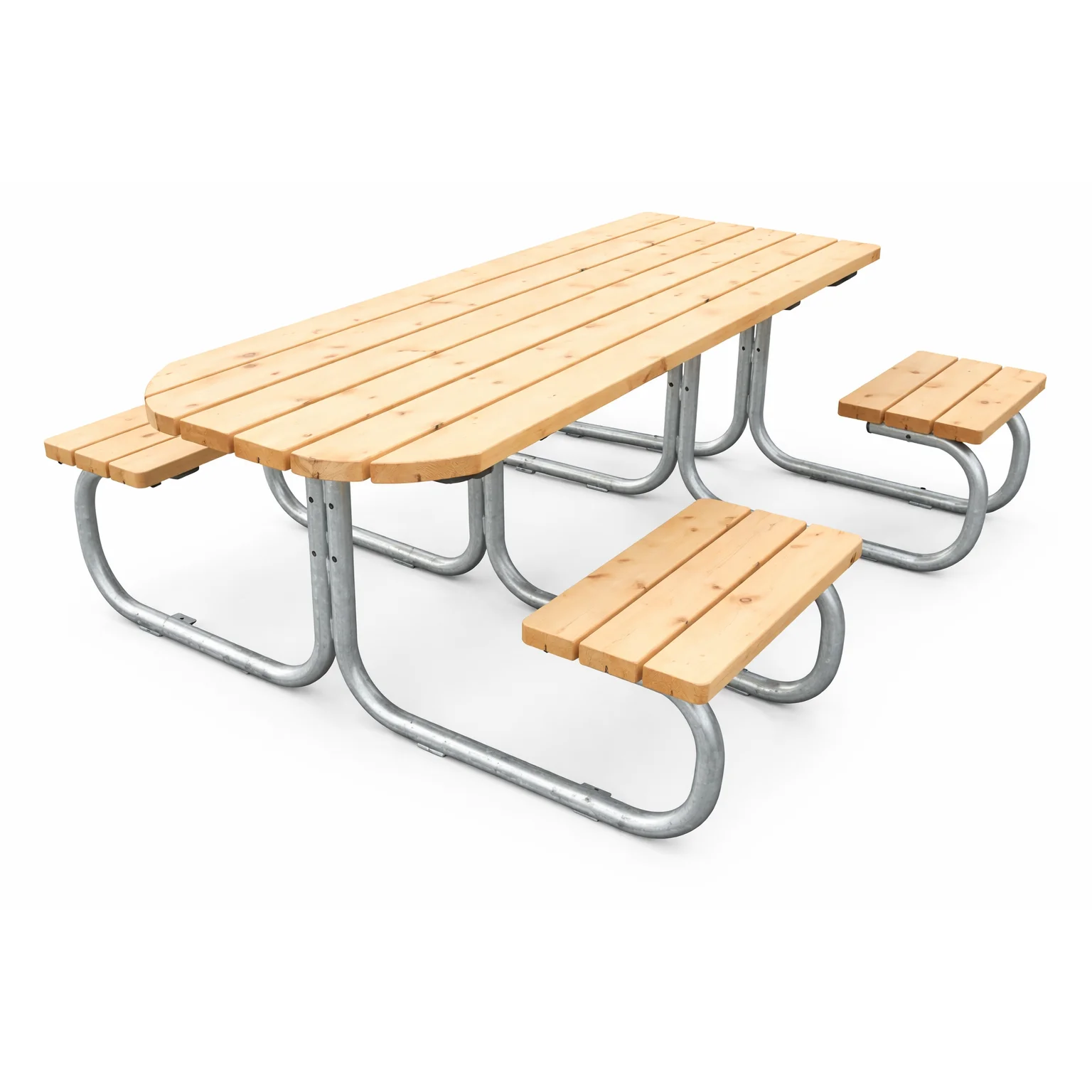 Bänkset i svensk norrländsk furu/ varmgalvaniserat stål Ø50 mm. 3 mm. tjocklek