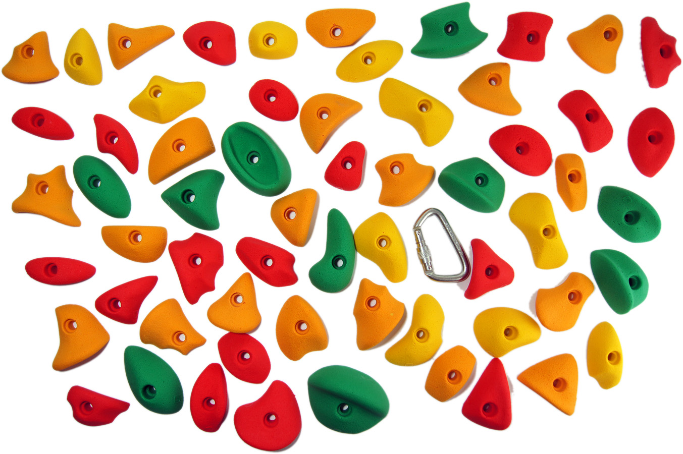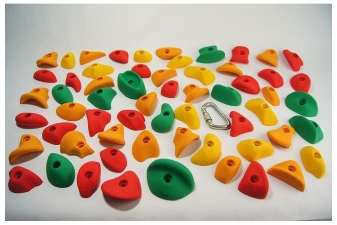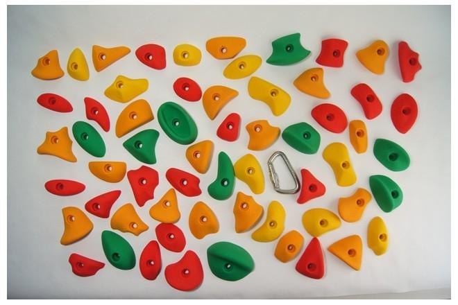 Greppsats Basic 60 är ett paket med totalt 60 st. klättergrepp i varierade färger och modeller. Greppsatsen innehåller både grepp som är lätta att klättra på för nybörjare och även grepp av lite svårare typer. De monteras med insexbult (medföljer ej). Passar perfekt där man vill variera klättringen på sin befintliga klättervägg eller vill bygga en egen vägg där man lätt kan variera genom att bygga nya leder och banor. Ett bra och prisvärt allround paket! (osorterade färger)