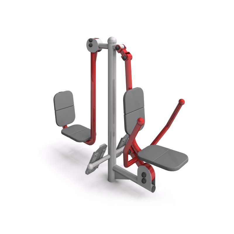 Utegymstation som kombinerar benpress och bröstpress för träning av både under- och överkropp. Stärker ben, bröst och armar samt förbättrar hållning och kondition. Säte och ryggstöd i polyuretanskum.
