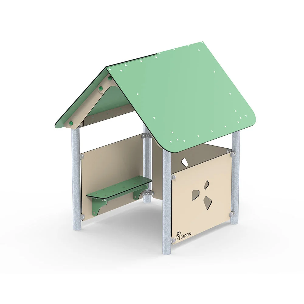 En traditionell lekstuga med bänk Beth är en av de fyra lekstugor i Basic-serien. Denna modell har en traditionell design med fyra väggar och en bänk inuti, där barnen kan sitta. Vill du ha en av våra lekstugor med mindre ytbehov? Ta då en titt på våra LB083 Ben , LB084 Beca och LB086 Bibi lekstugor. Lekstugor har flera funktioner för barnen. De är bra för rollspel och fördjupning av en lekpanel, men lekstugor kan också vara en plats där barnen kan dra sig tillbaka. Barn älskar gömställen, eftersom de döljer dem från omvärlden och ger dem tid att prata och dela hemligheter. I vår lekstuga i Beth kan barnen skaffa sig en viloplats, där de kan känna sig trygga och följa med i världen. Bänken ger dem en plats att sitta på, både ensamma och med en kompis. Liksom resten av Basic-serien är Beth tillverkad av material med lågt underhåll, vilket gör att du sparar både tid och resurser på att underhålla lekstugan. Dessutom är materialet återanvändbart och kan återvinnas och användas till nya lekplatser när Beth går i pension. Varför välja LEDON basic? Alla de grundläggande elementen du behöver för en lågkvalitativ lekplats till låga priser. Kompakta torn, som kräver lite utrymme. Systemen finns i en mängd olika varianter för att möta alla behov. Att tillhandahålla grundläggande motoriska utmaningar är av största vikt – det är också en lekplats för äldre barn. Kan enkelt integreras i både befintliga lekmiljöer eller kombineras med våra andra temavärldar.