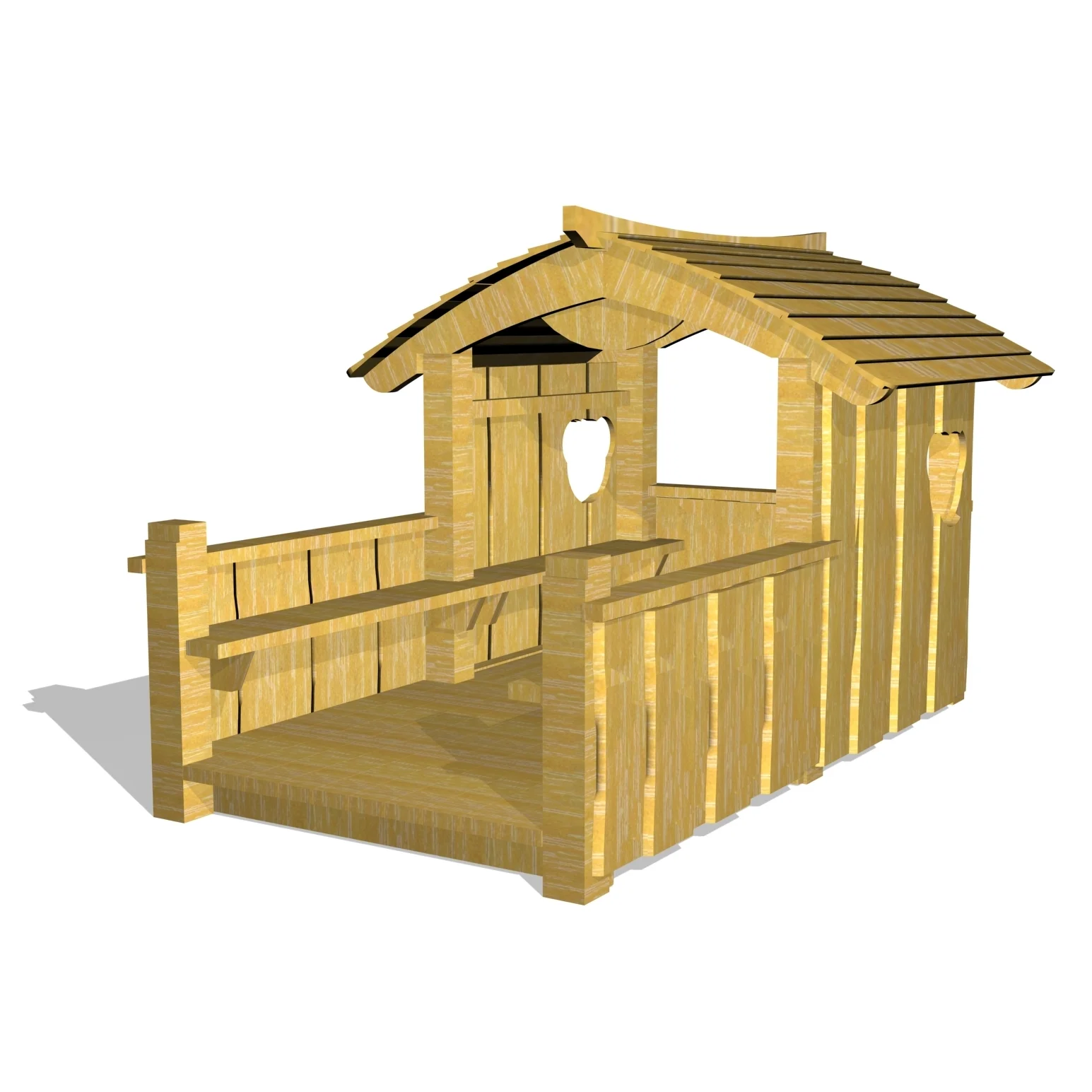 Björnhus med golv och balkong.