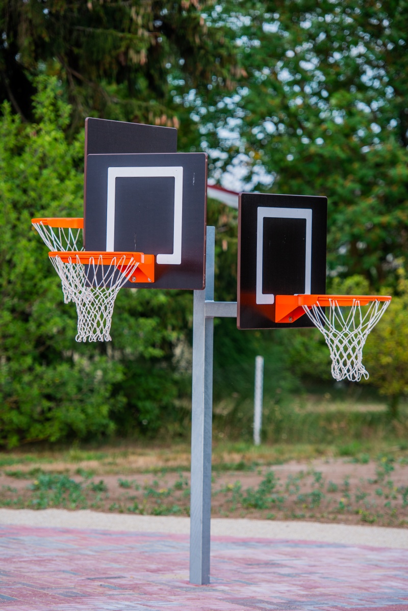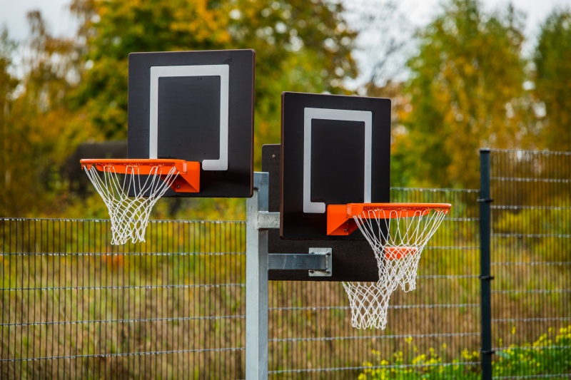 Basketkonstruktionen består av ett varmförzinkat metallrör, tre vattentäta backboards av plywood och en båge med nylonnät. Höjden på ryggbrädorna är 1,6 m, 1,8 m och 2,00 m.